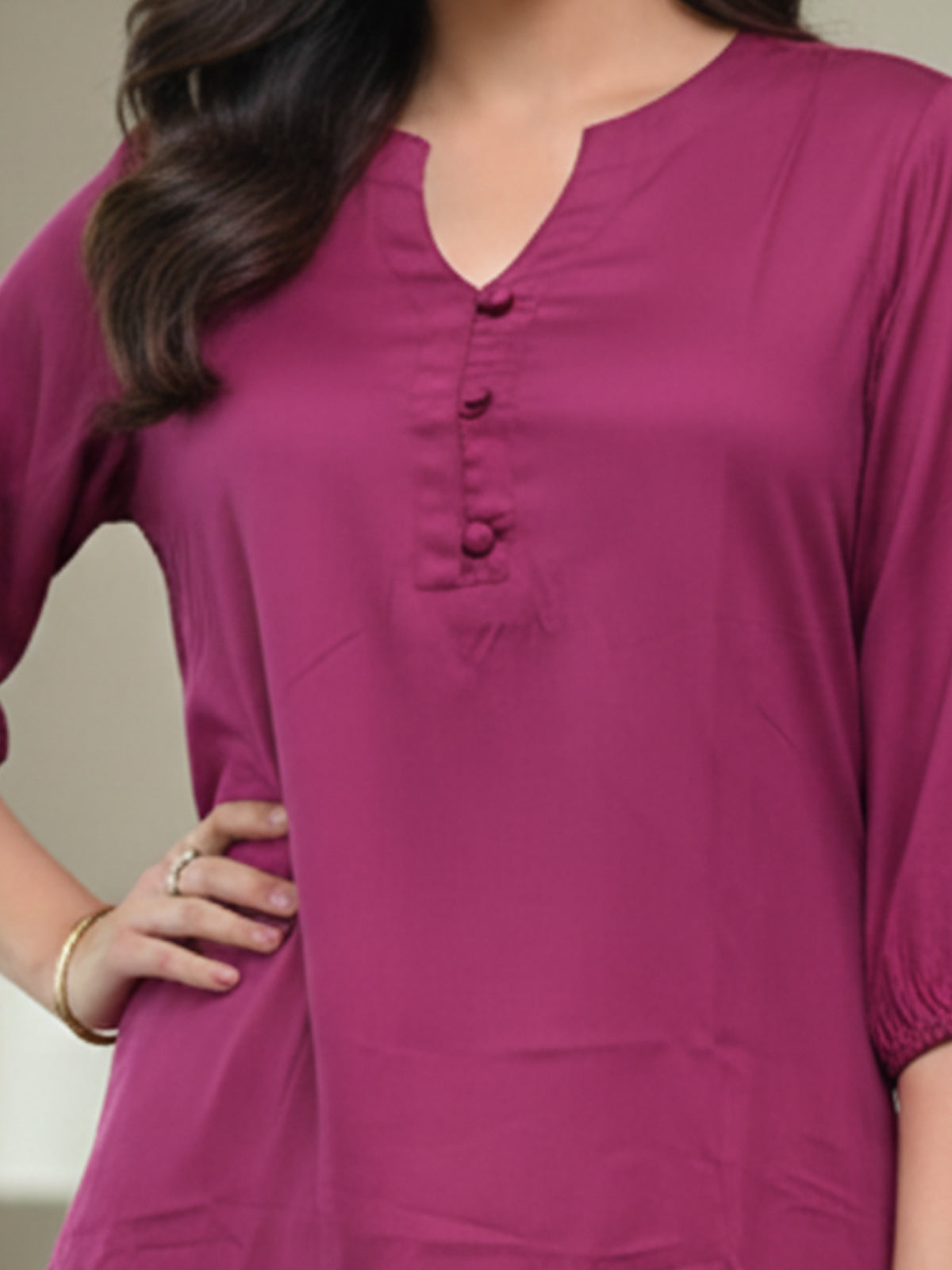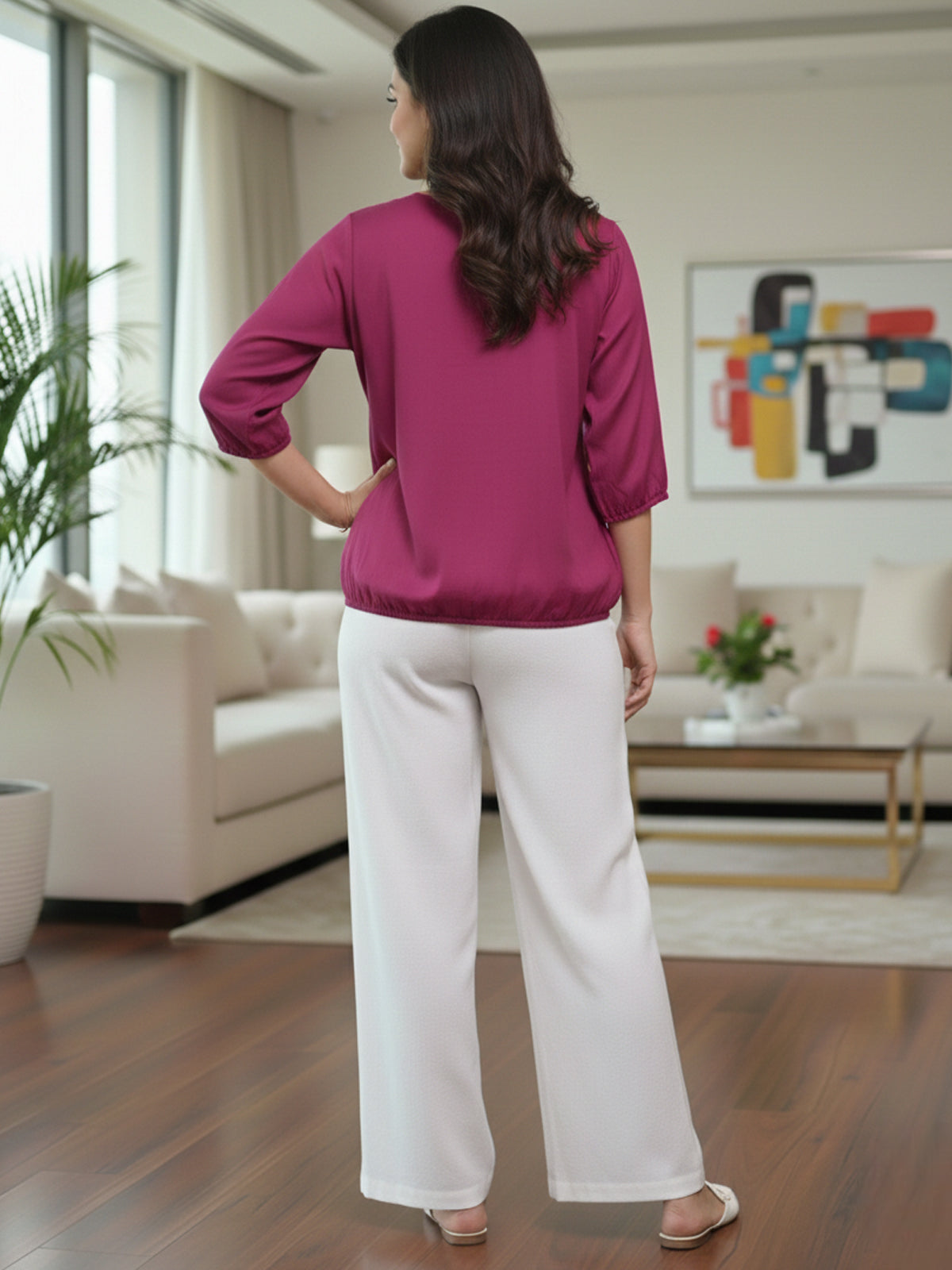 SAAV Modern Viscose Plain Tops for Women feature a regular fit and premium-quality fabric that gives a soft feel and a beautiful, elegant look. The solid colour design with an elastic waist makes these tops highly versatile, allowing you to create multiple stylish outfits for office wear, daily use, casual outings, or evening get-togethers. Lightweight and breathable viscose fabric ensures all-day comfort while maintaining a smart appearance. Shop from the wide range of solid viscose tops by SAAV and pair them with stylish trousers, jeans, or skirts to complete your everyday look. Perfect for women who prefer comfort with modern style.