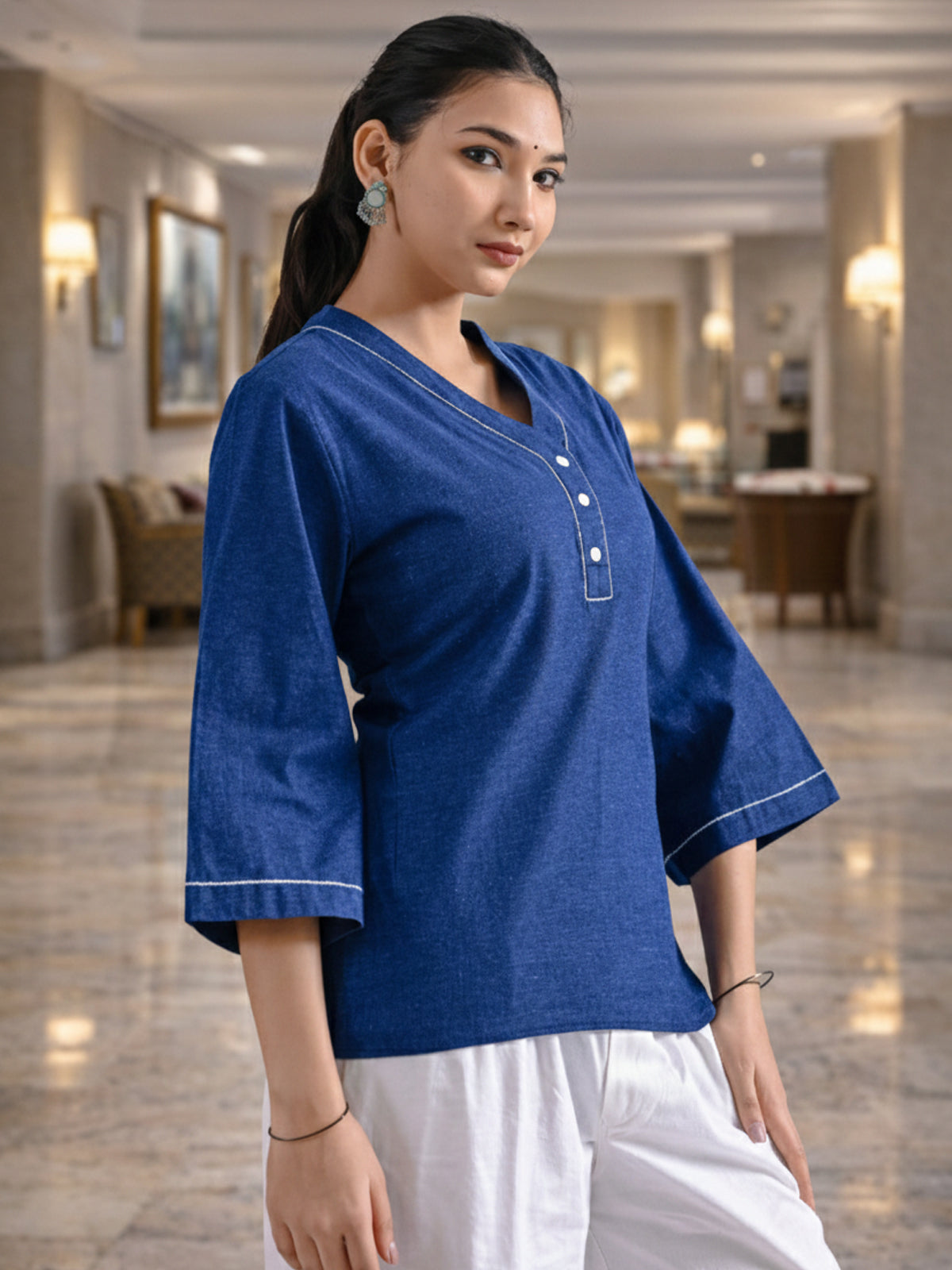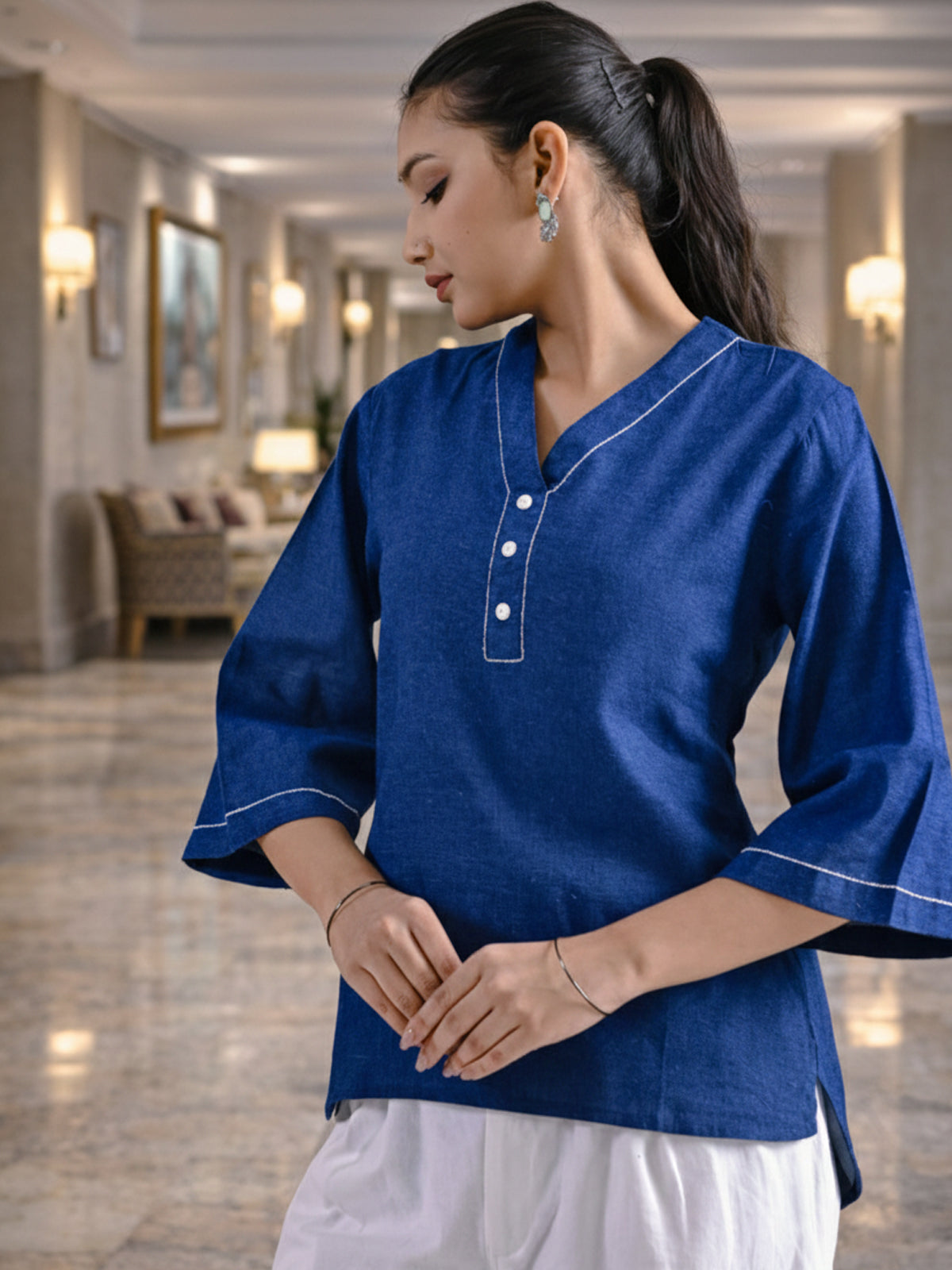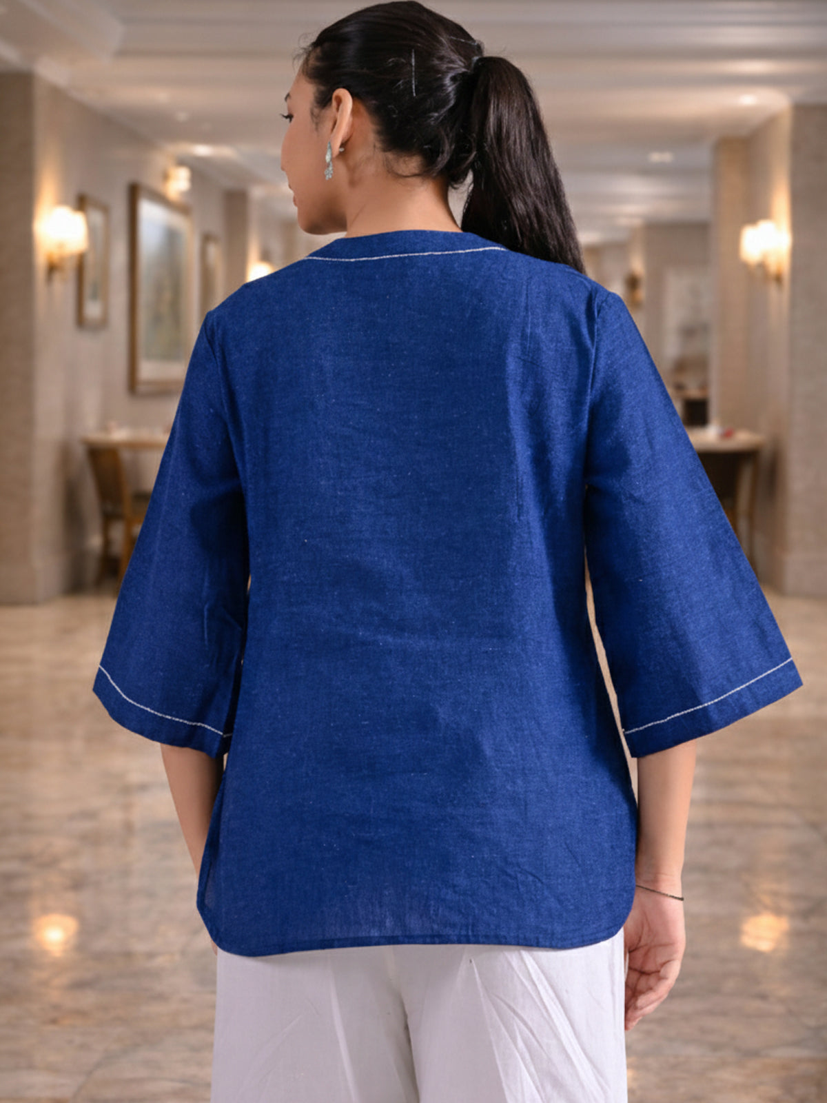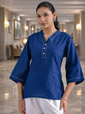 Blue Handloom Cotton Anchor Thread Designer Top