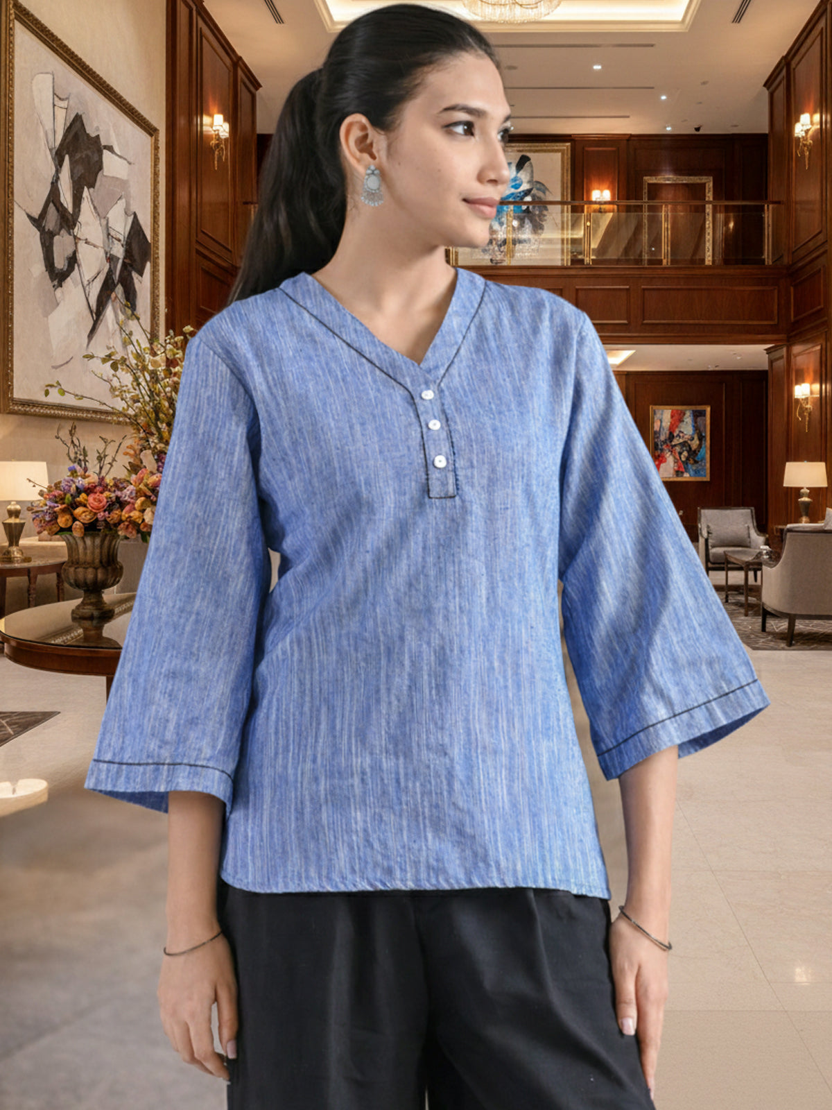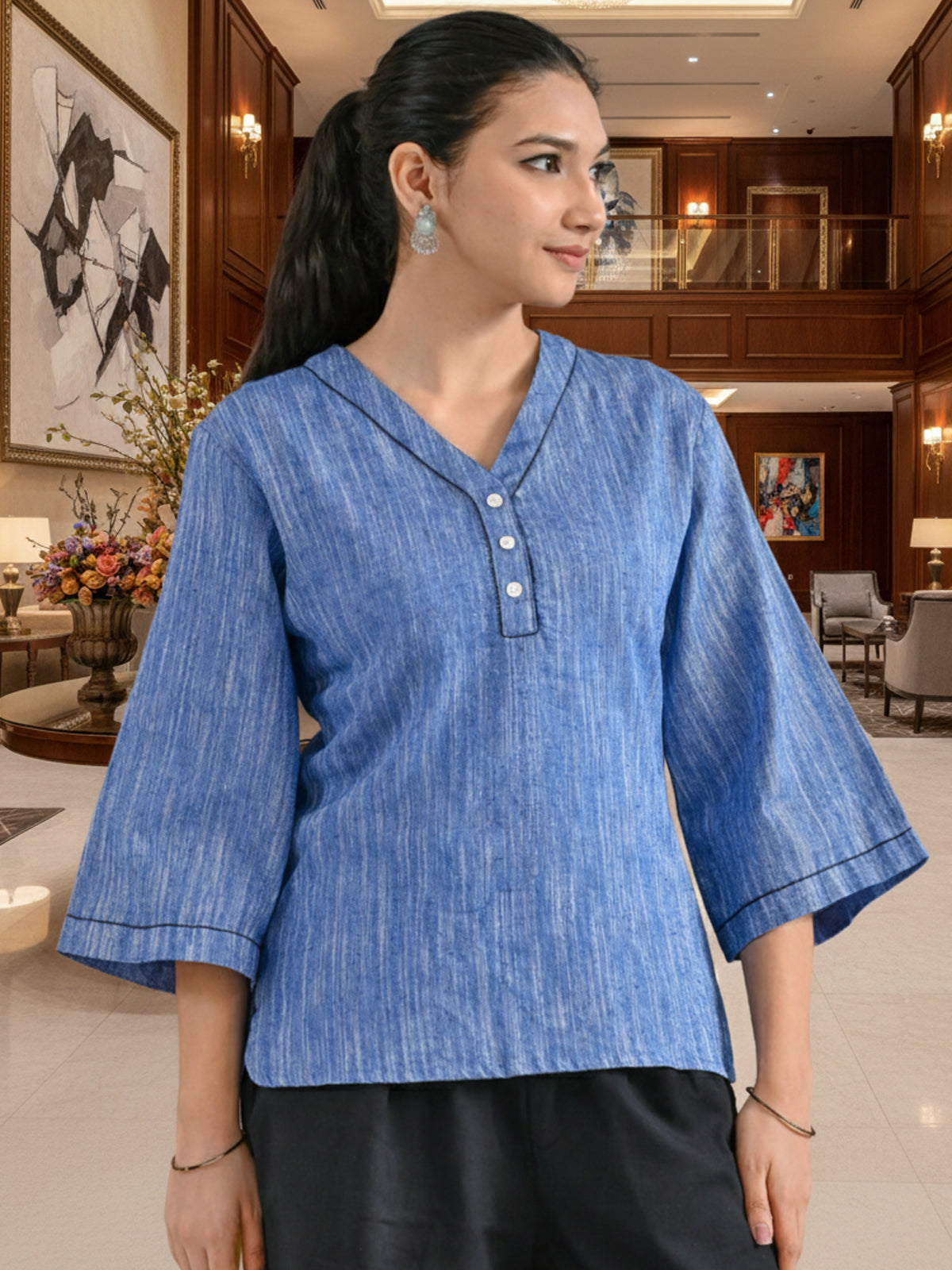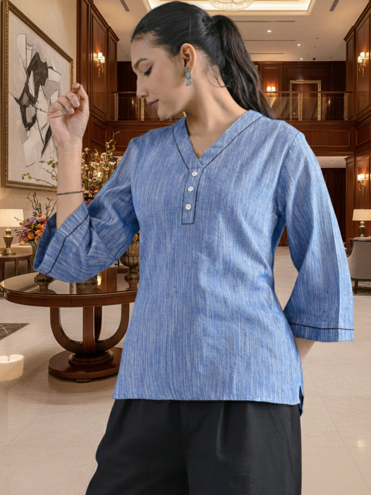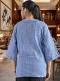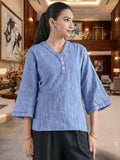 Denim Blue Handloom Cotton Anchor Thread Designer Top