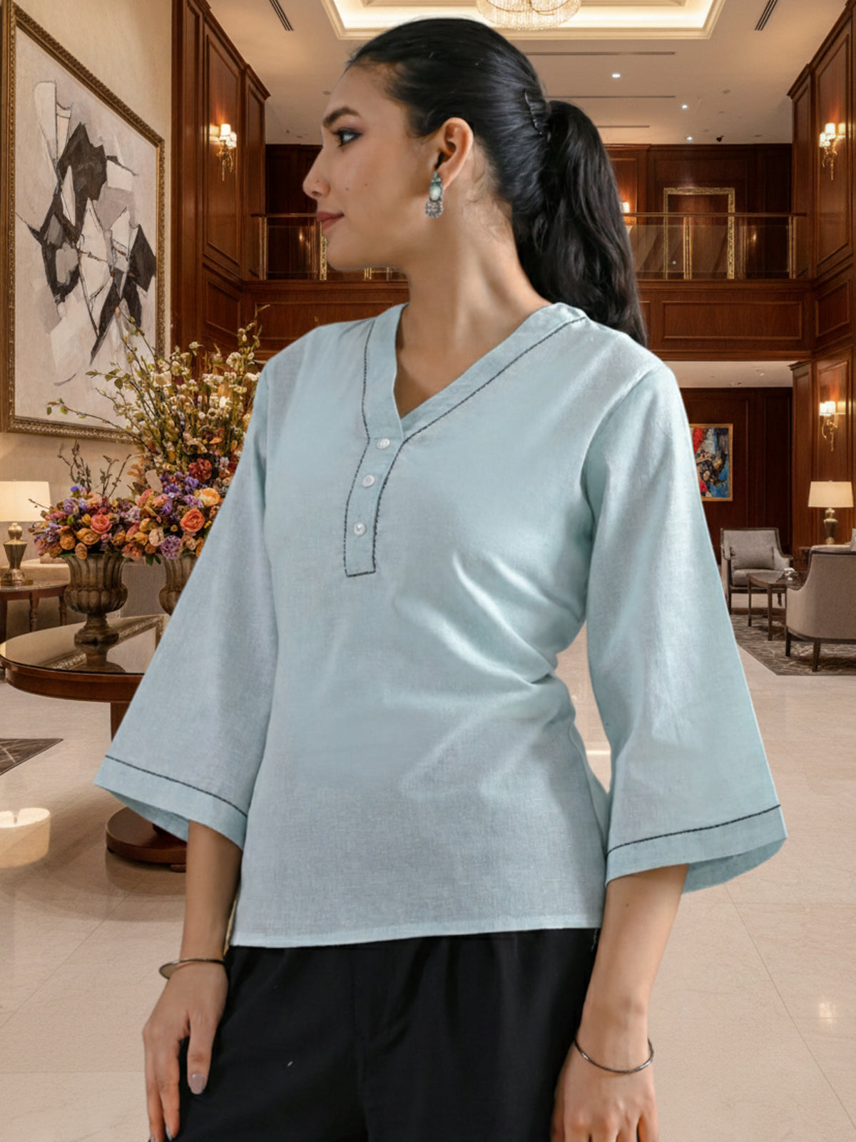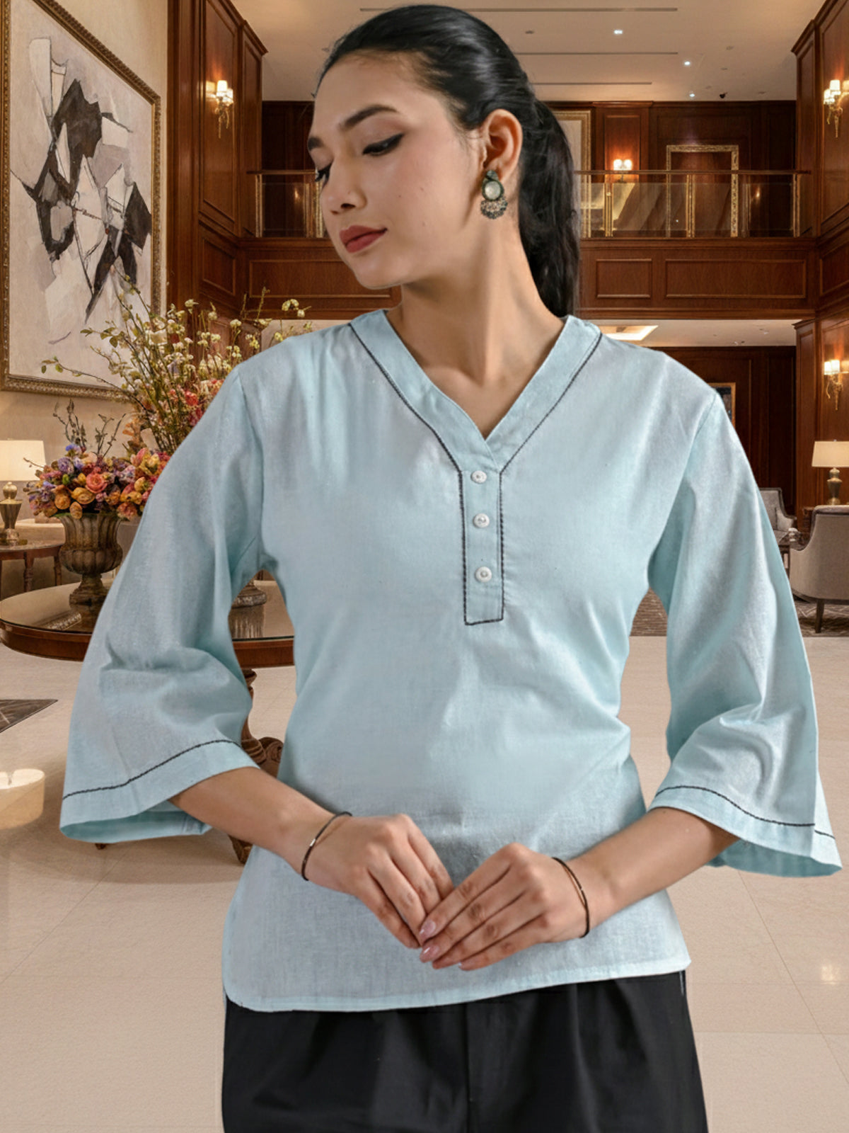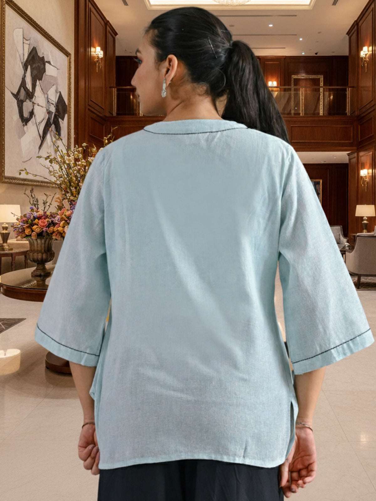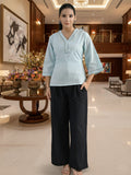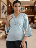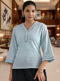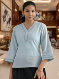 Ice Blue Handloom Cotton Anchor Thread Designer Top