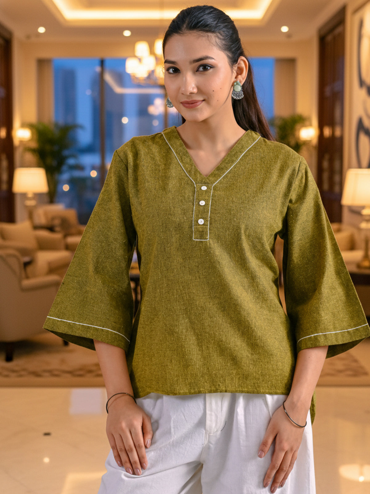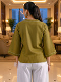 Mustard Handloom Cotton Anchor Thread Designer Top