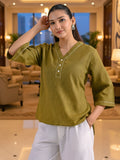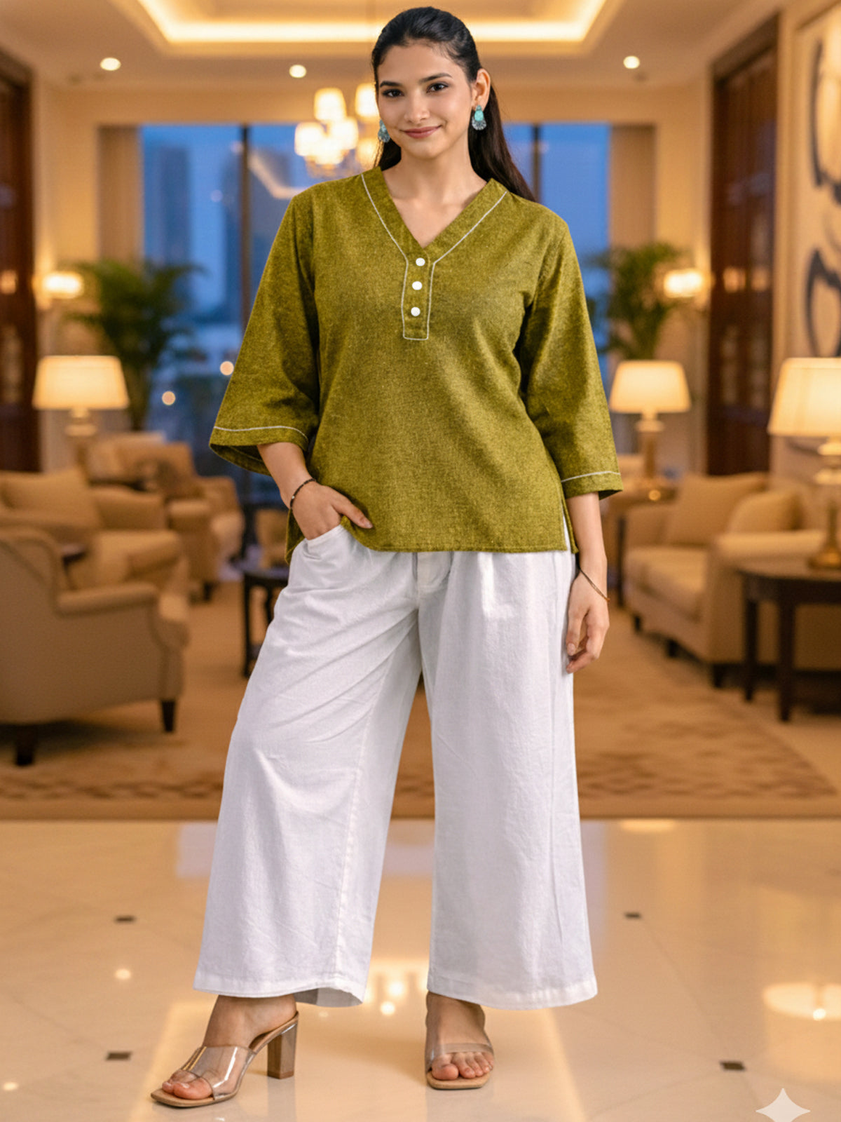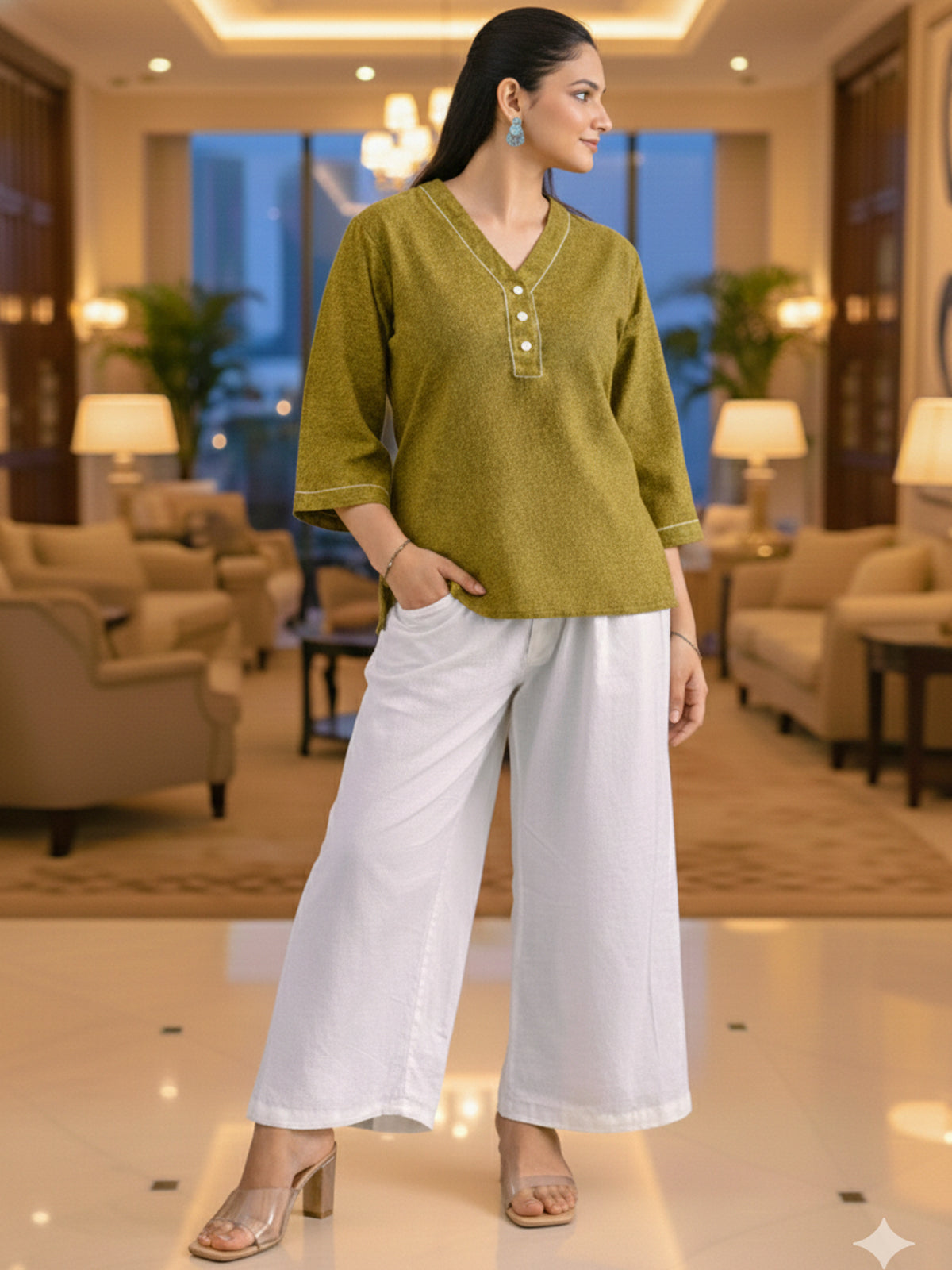 Enhance your wardrobe with this beautifully crafted anchor thread top from SAAV featuring intricate thread work and fine detailing. Designed for women who love elegant yet comfortable fashion, this top pairs perfectly with jeans, skirts, or palazzos. The premium-quality fabric ensures breathability and ease, while the exquisite anchor thread embroidery adds a touch of artistry. Perfect for casual outings, office wear, or festive occasions, this top blends traditional craftsmanship with modern style.