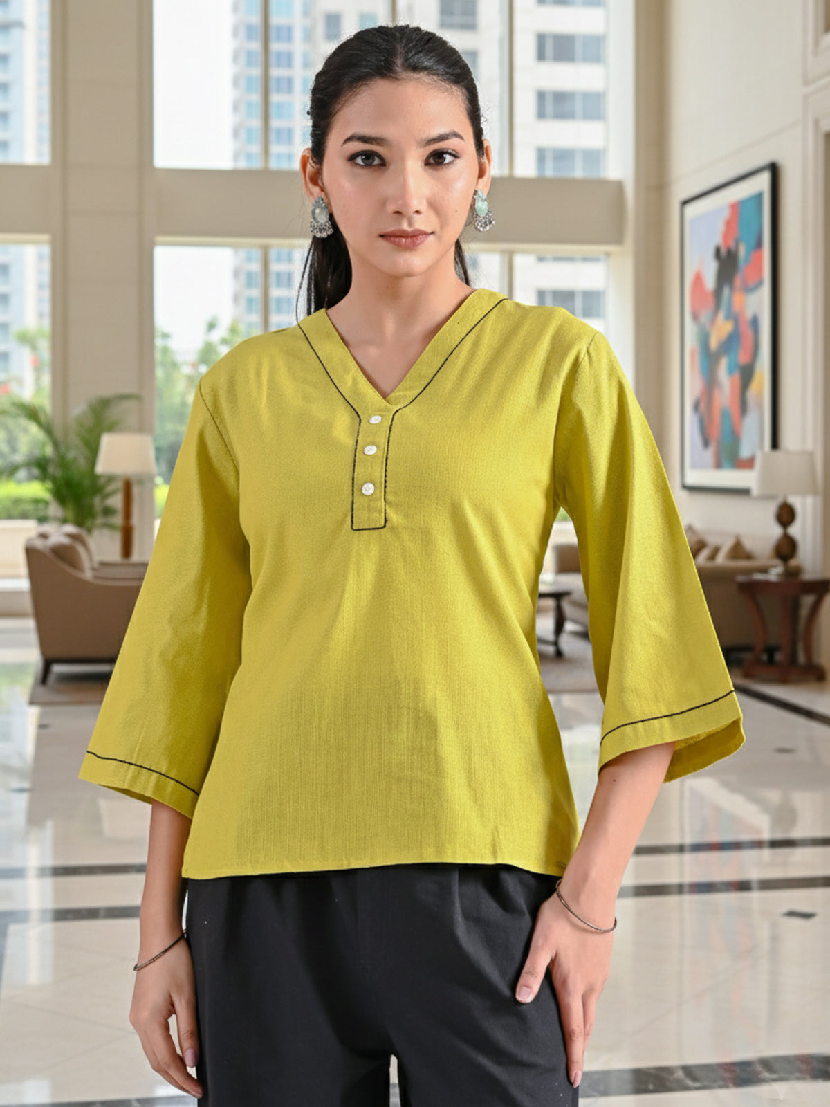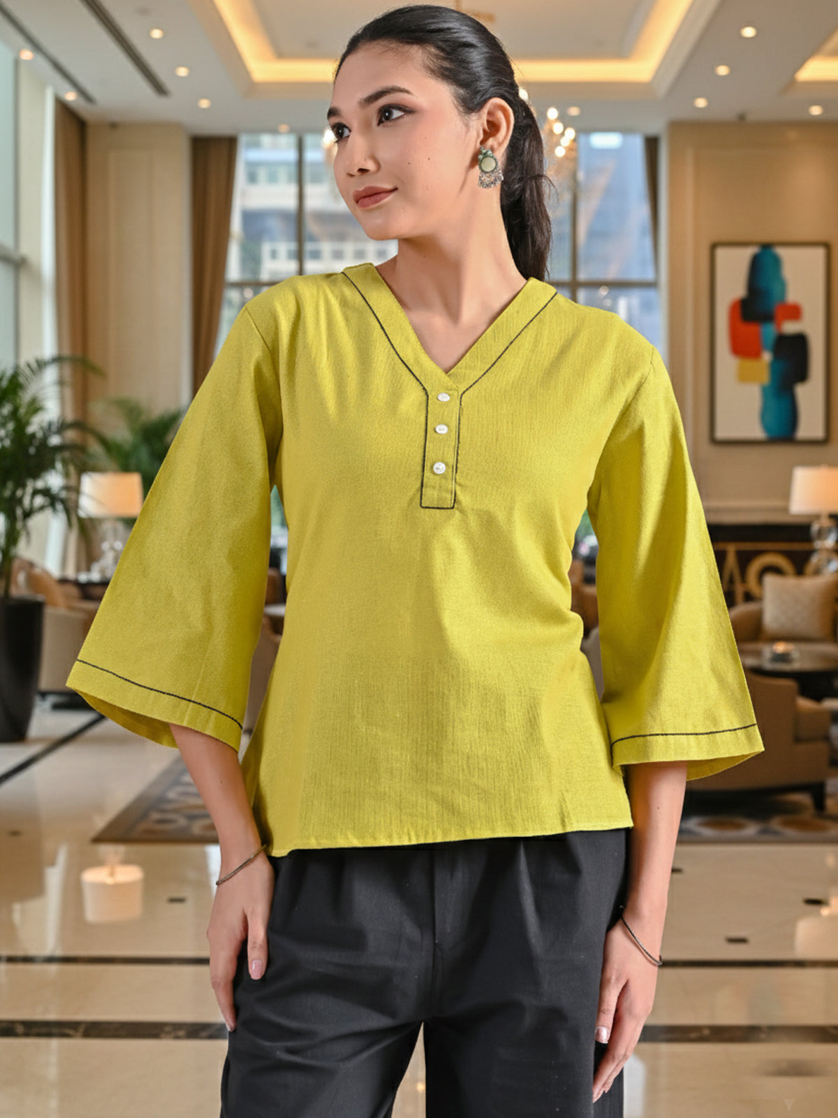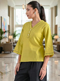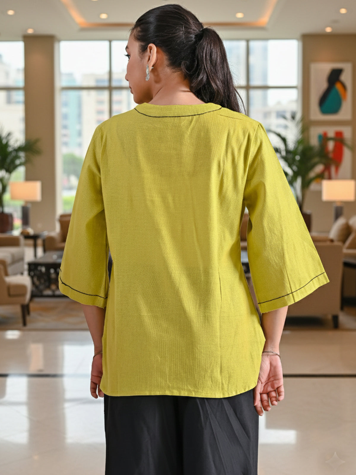 Parrot Green Handloom Cotton Anchor Thread Designer Top