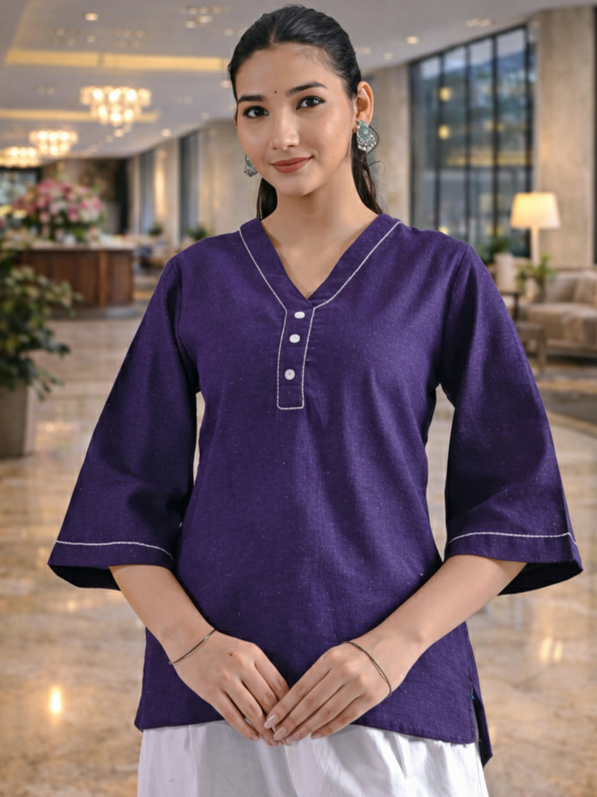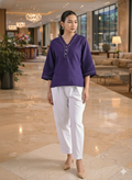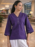 Purple Handloom Cotton Anchor Thread Designer Top