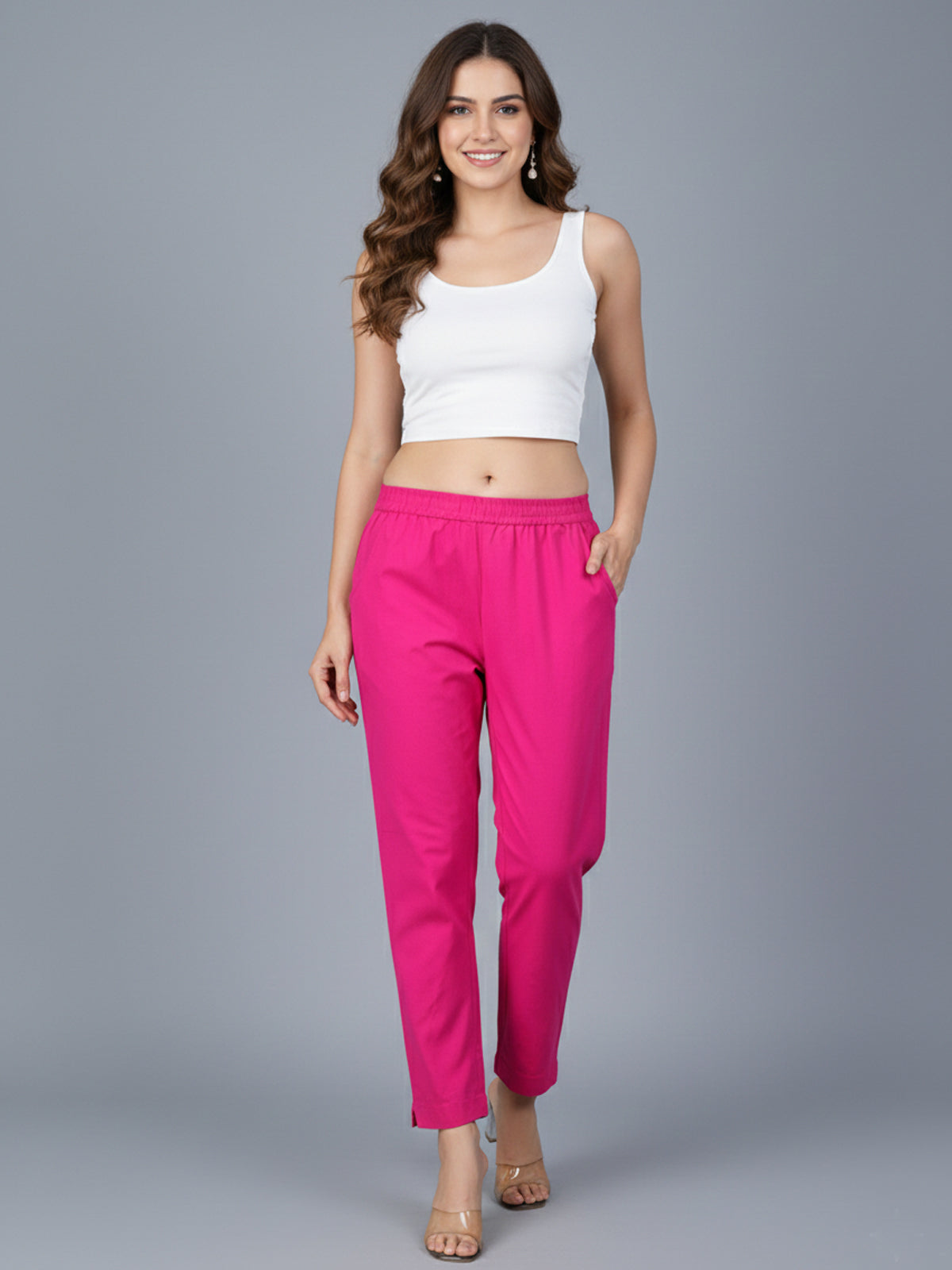 Everyday Rani Pink Cotton Fully Elastic Trouser