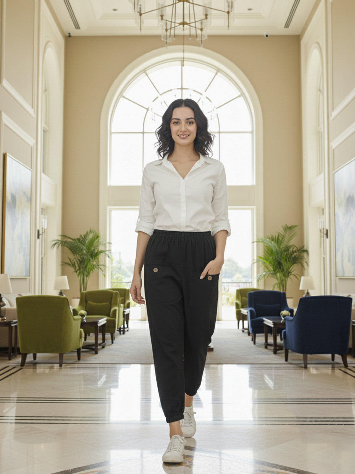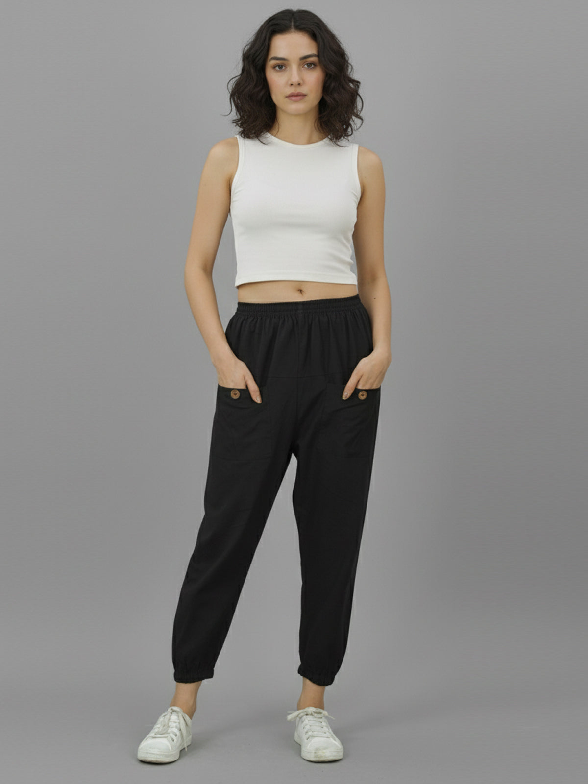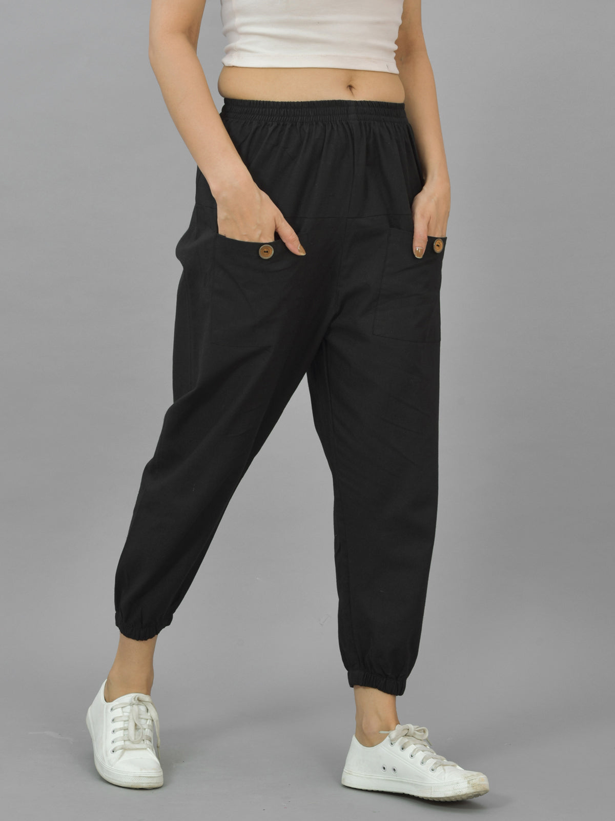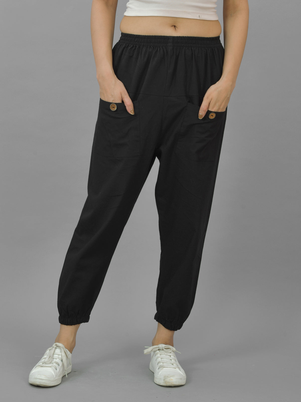 Discover premium comfort and style with SAAV Women’s Four Pocket Cotton Joggers, designed for everyday versatility. Crafted from high-quality cotton fabric, these joggers feature a fully elastic waistband and elasticated bottom for a secure and relaxed fit. Built with two spacious side pockets and two front utility pockets, they offer practicality and modern streetwear appeal. Perfect for casual outings, travel, gym sessions, or comfortable daily wear, these joggers deliver a soft feel and breathable comfort throughout the day. Pair them effortlessly with t-shirts, crop tops or hoodies for a trendy and sporty look. A must-have wardrobe essential from SAAV.