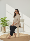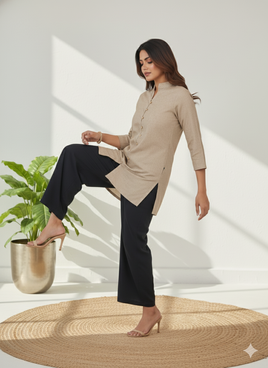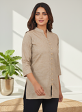 Brown Handloom Cotton Front-Slit Short Kurti for Women