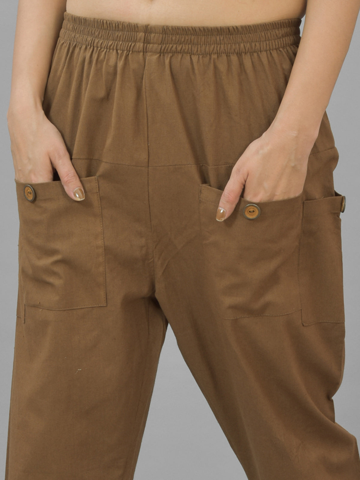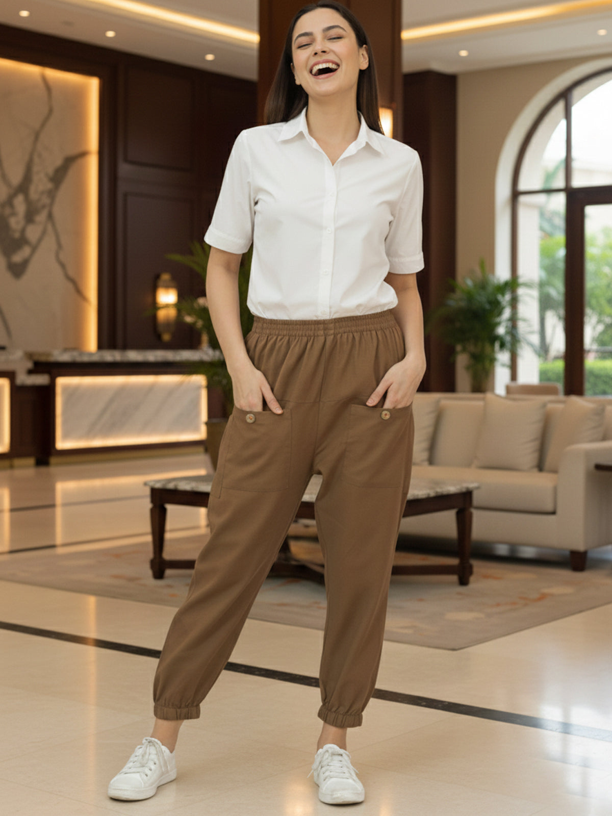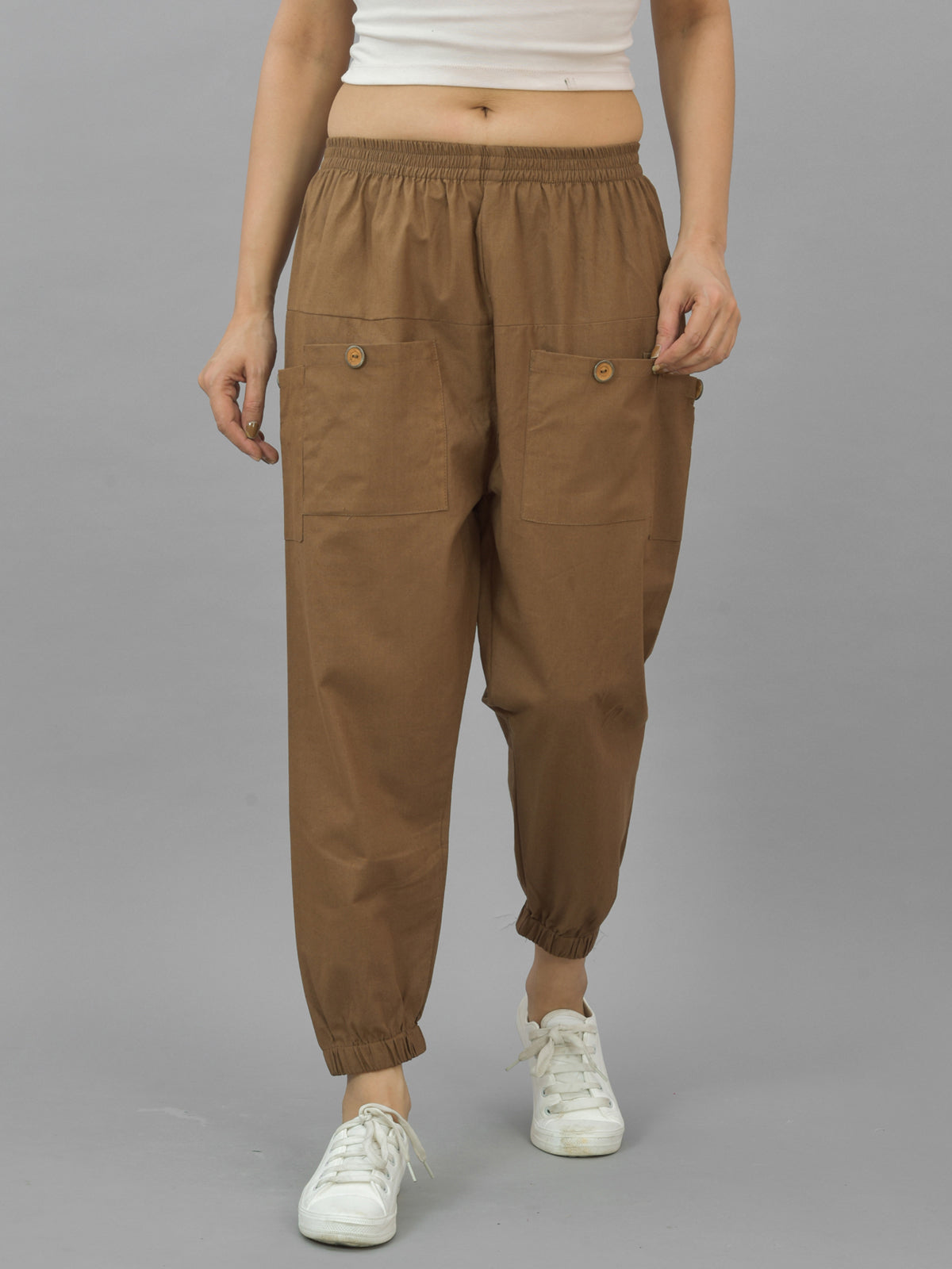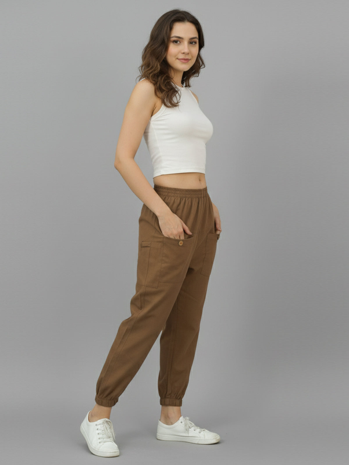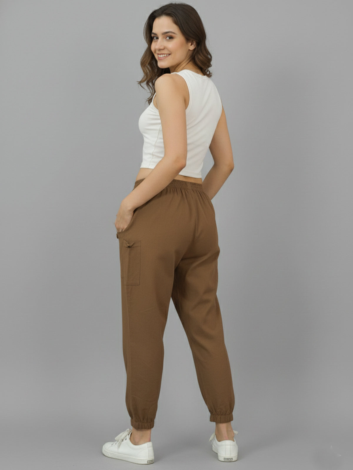 Brown Utility Joggers - Stylish Fit, Multi Pocket