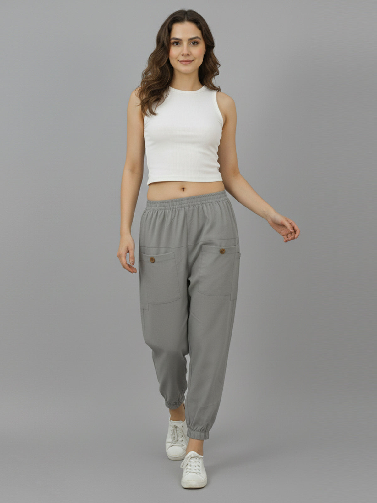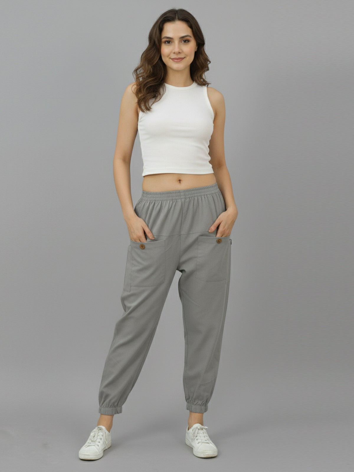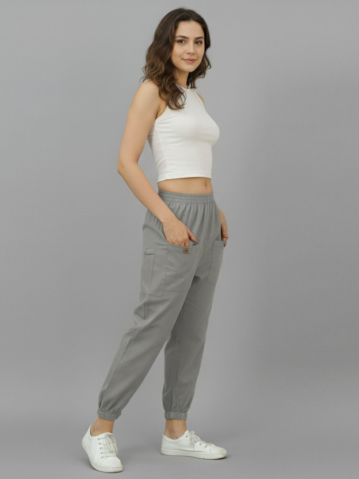 Grey Utility Joggers - Stylish Fit, Multi Pocket