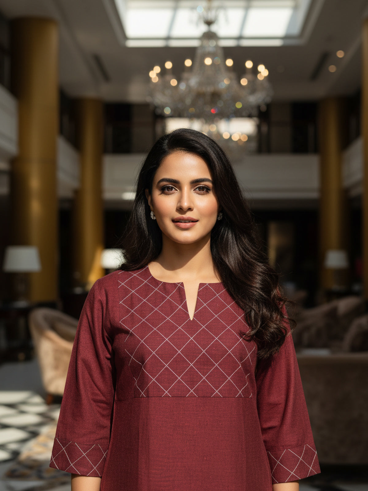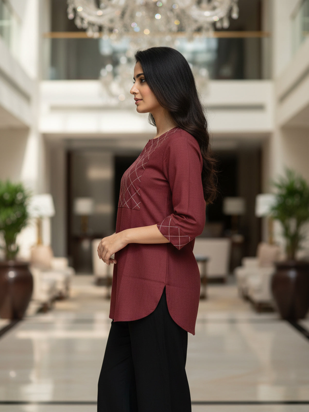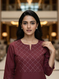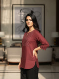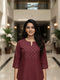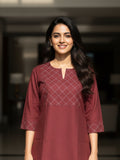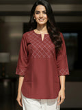 Maroon Cotton Handloom Yoke Design Top