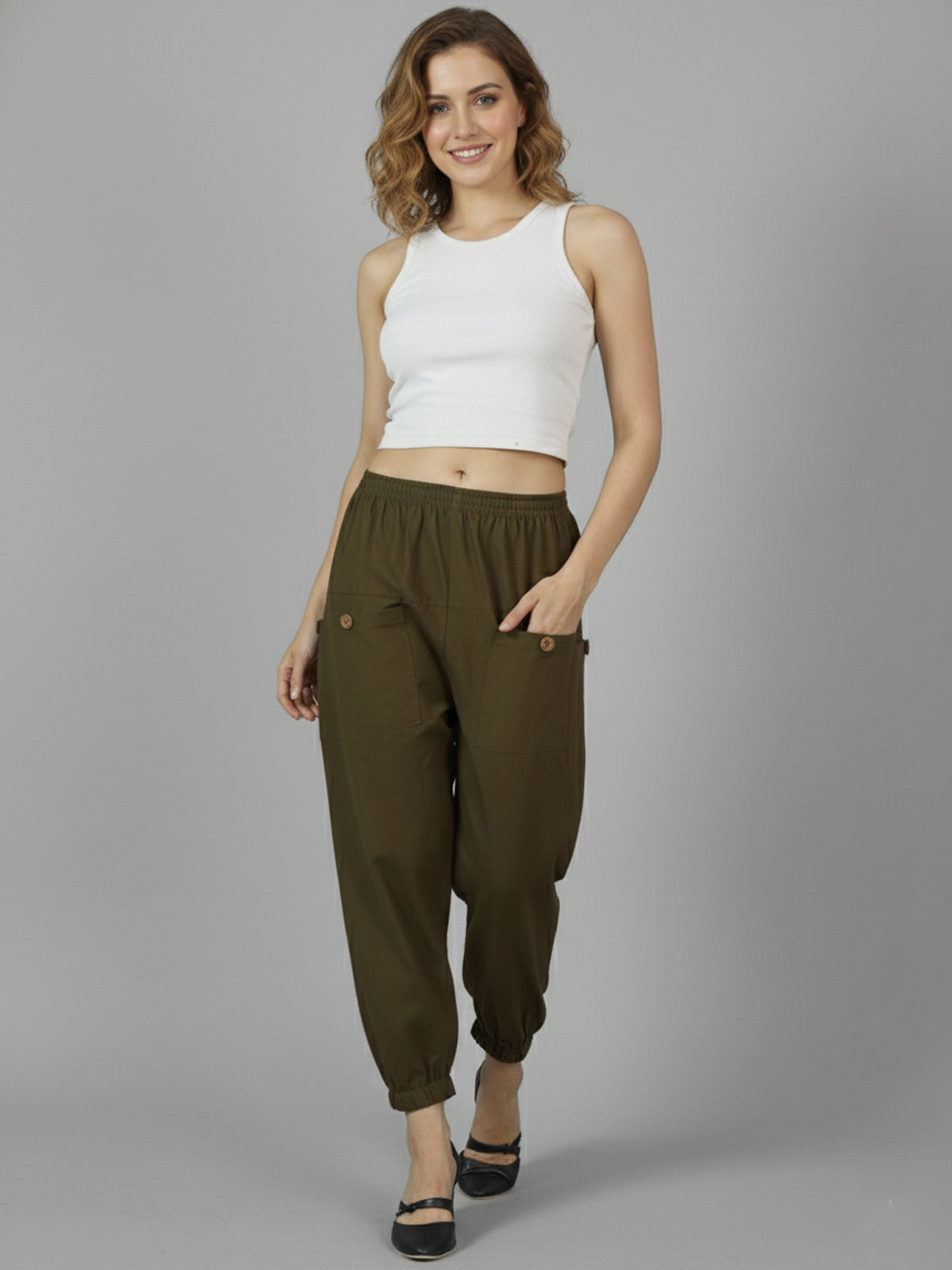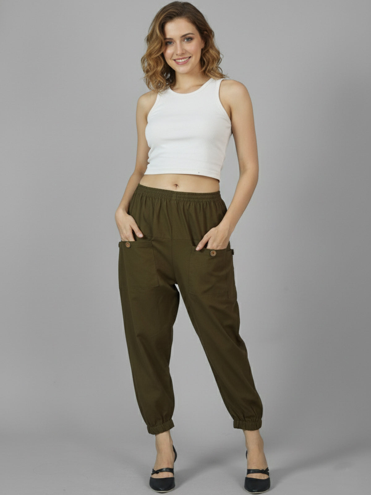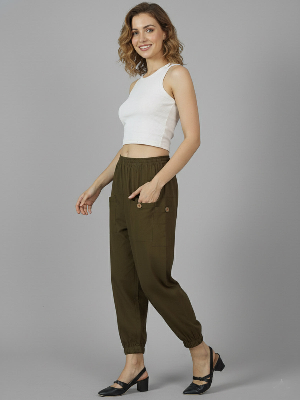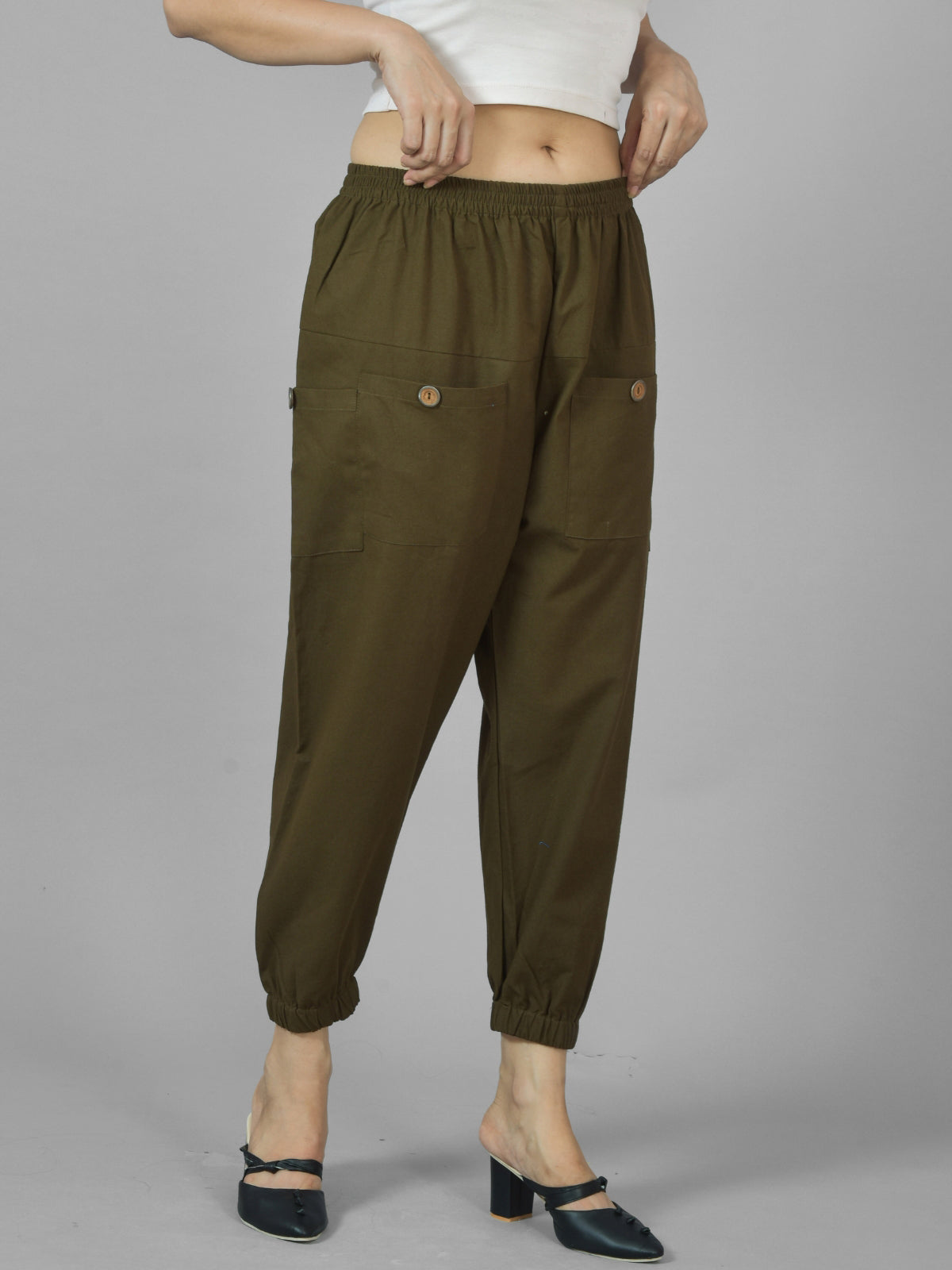 Mehendi Green Utility Joggers - Stylish Fit, Multi Pocket