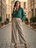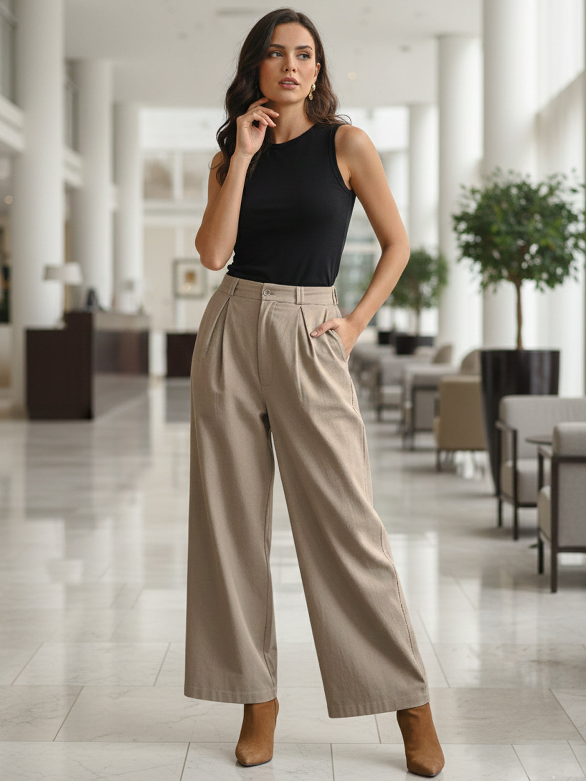 Effortless Style Meets Comfort: These wide-bottom cotton pants are your all-season essential. Featuring a flattering pleated design and a comfortable cotton fit, they offer a stylish and fashionable look perfect for any day.