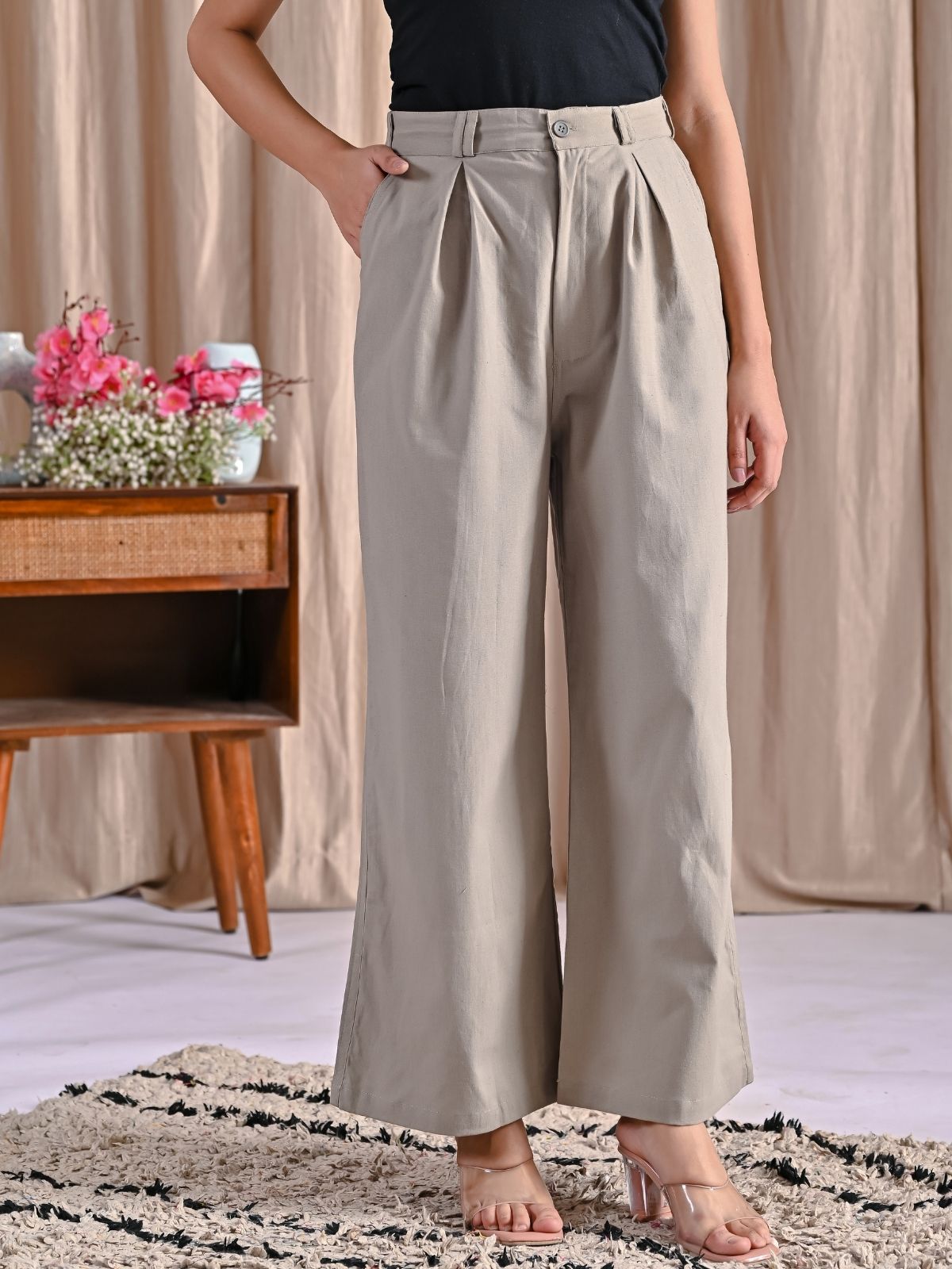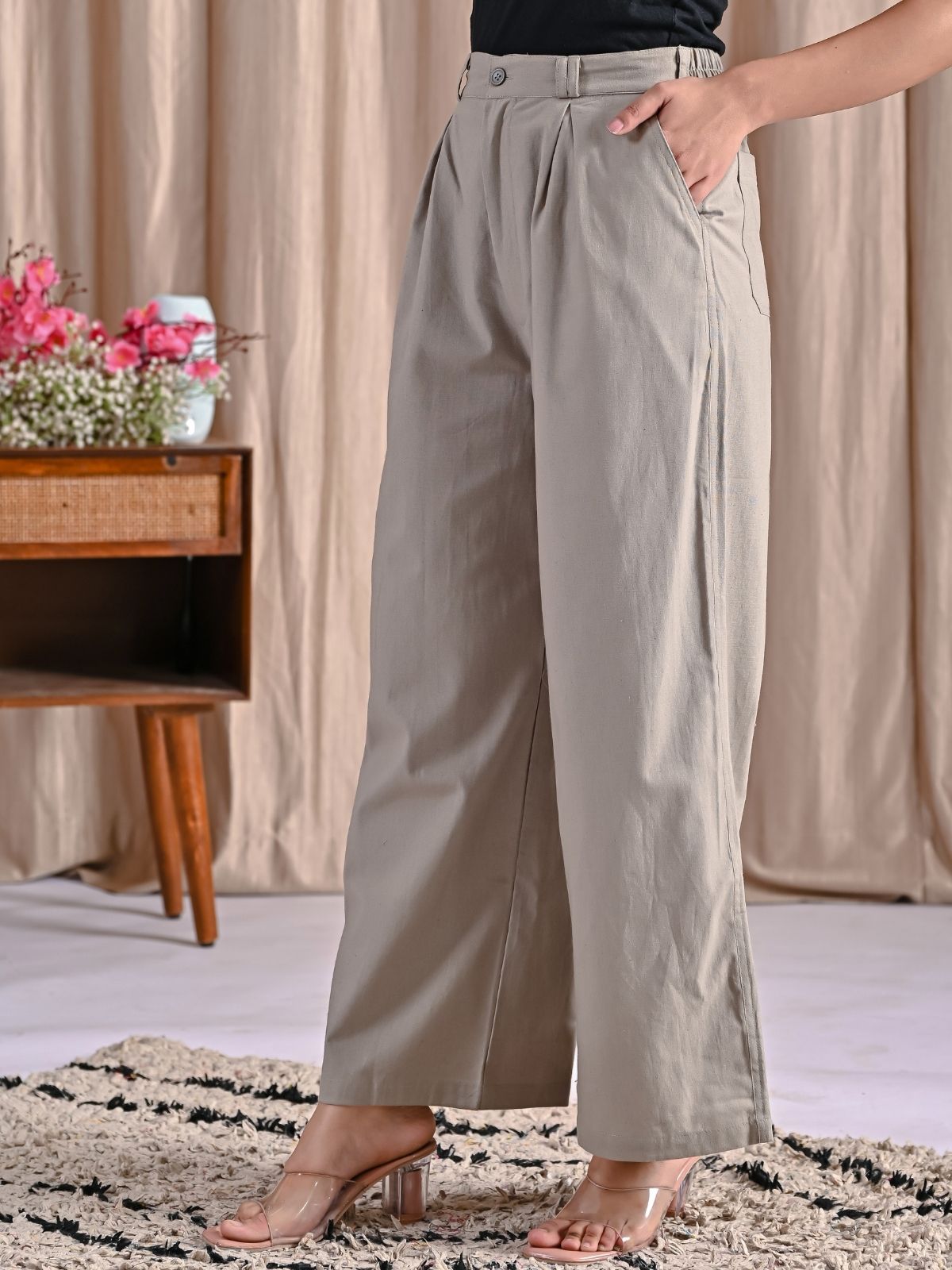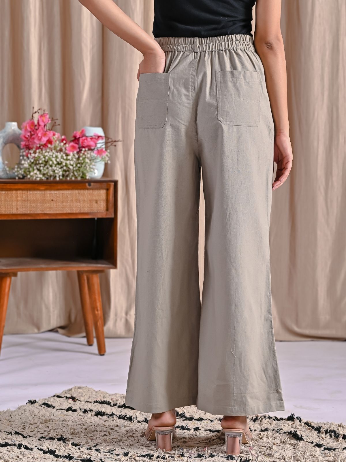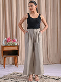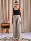 Melange Grey Relaxed Fit Wide Leg Pants - Pure Cotton