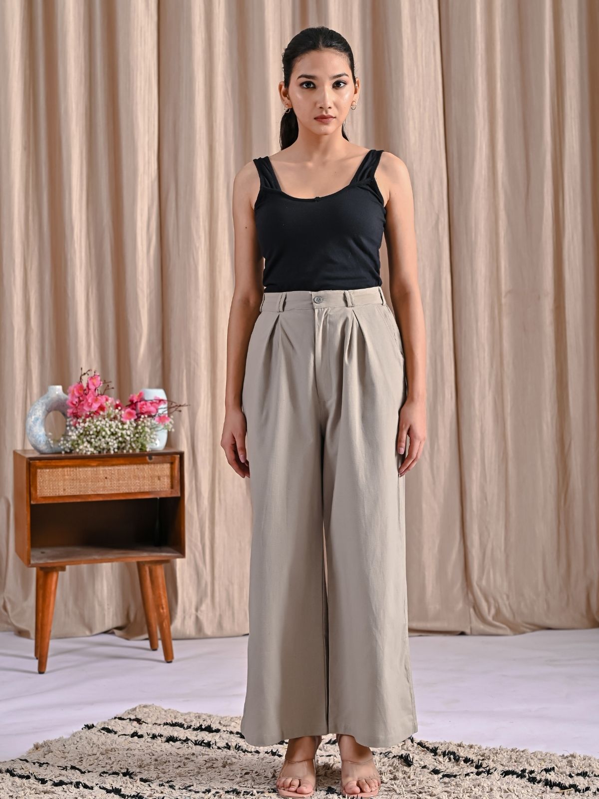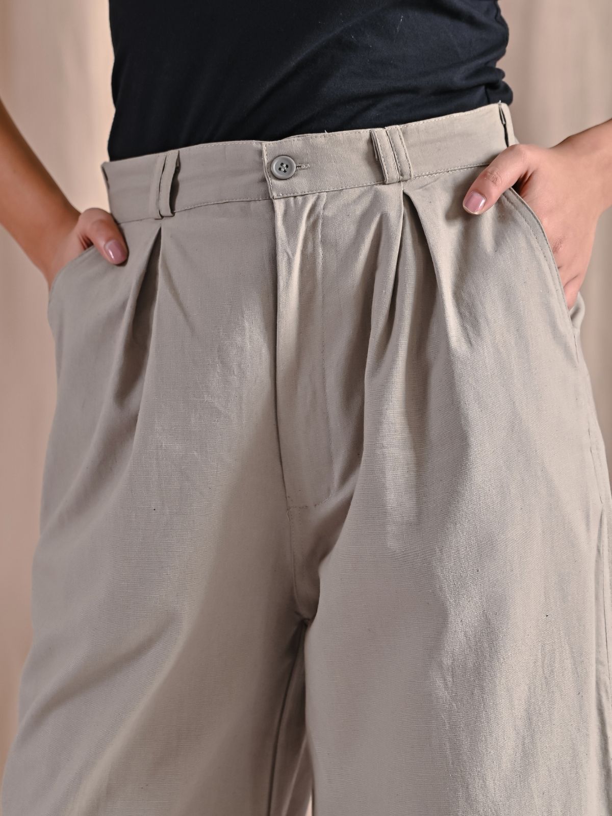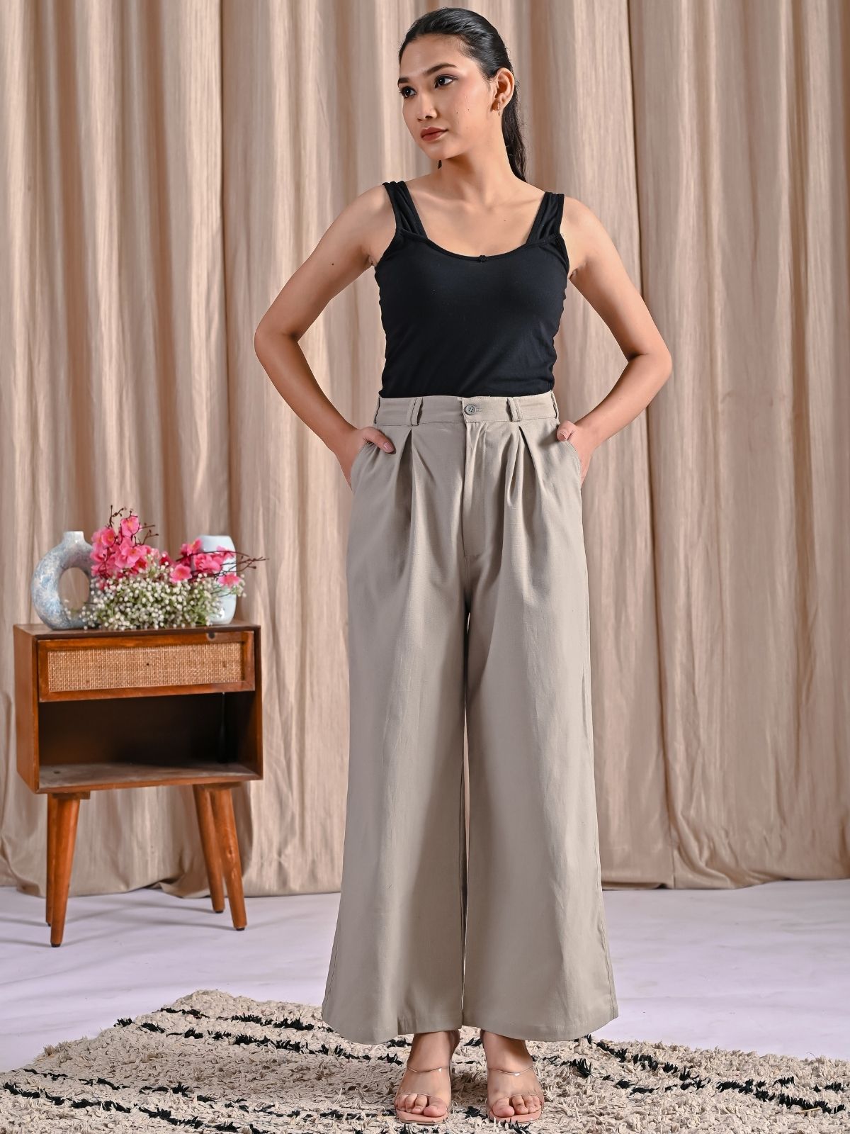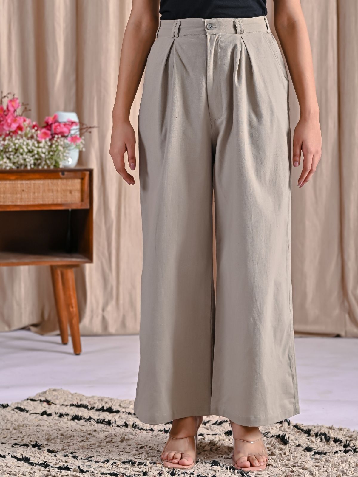 Melange Grey Relaxed Fit Wide Leg Pants - Pure Cotton