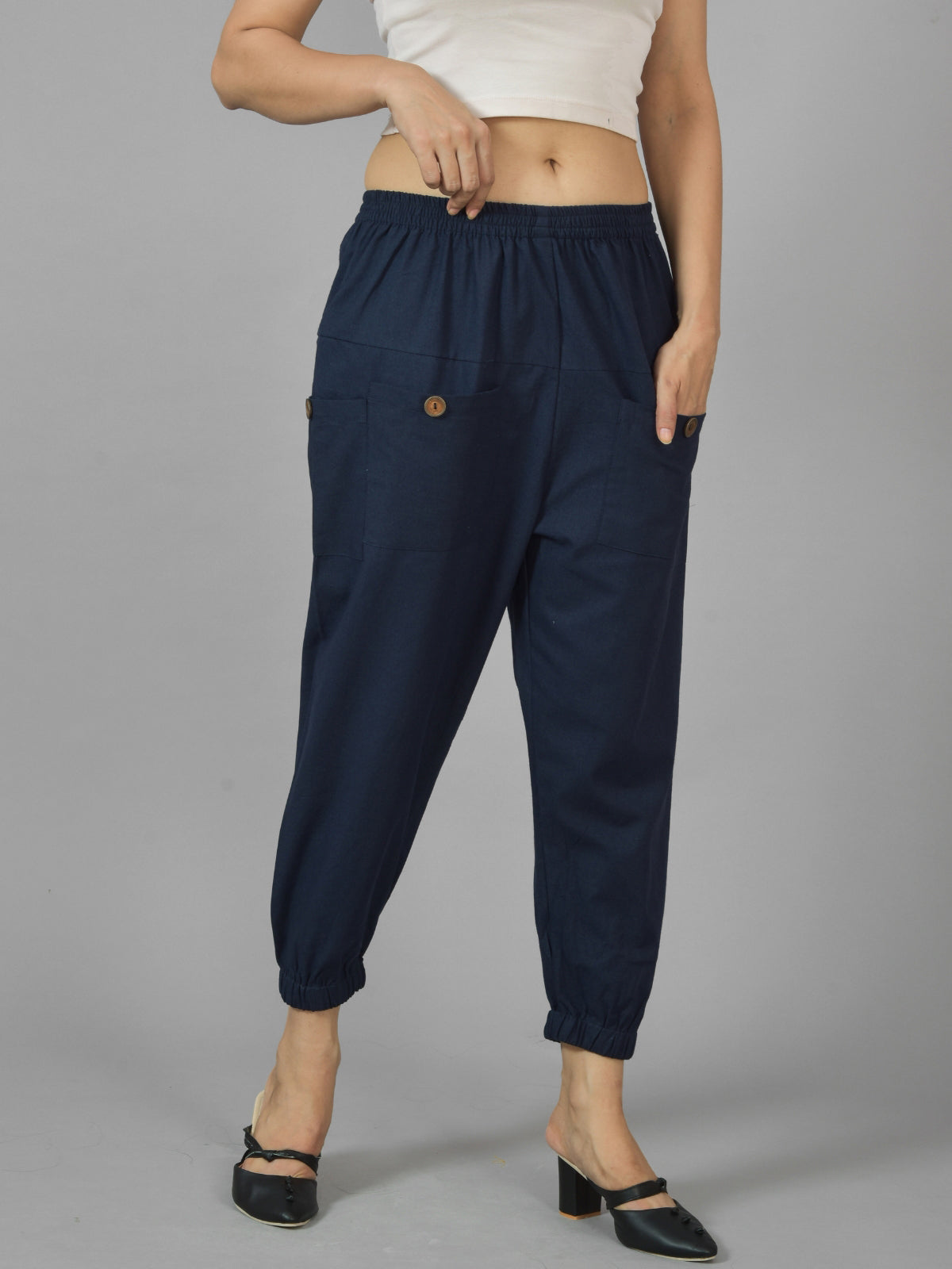 Navy Blue Utility Joggers - Stylish Fit, Multi-Pocket