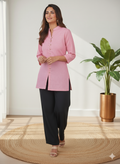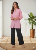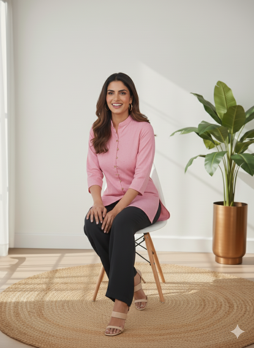 Pink Handloom Cotton Front-Slit Short Kurti for Women