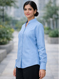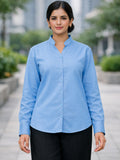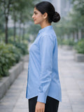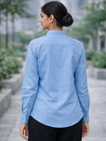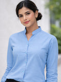Women Solid Sky Blue Viscose Shirt