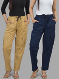 Bundle of 2 Beige & NavyBlue Utility 5-Pocket Cargo Pants