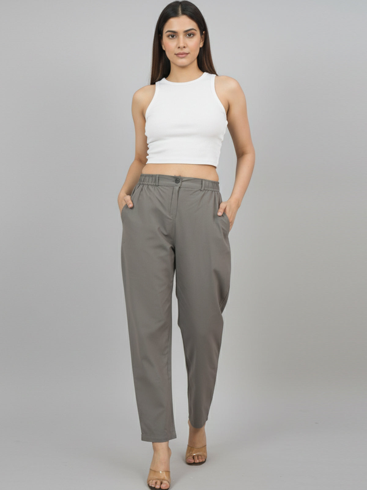 Upgrade your everyday wardrobe with these stylish women’s button pants, designed for both comfort and versatility. Made from premium cotton fabric, these pants feature a smooth front zip closure, a secure button fastening, and an elastic waistband for a flexible fit. The two side pockets add practicality for daily use. Perfect for formal meetings, office wear, or casual outings, these pants offer a polished and modern look that keeps you comfortable and confident all day long.