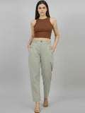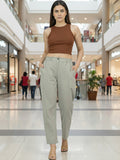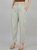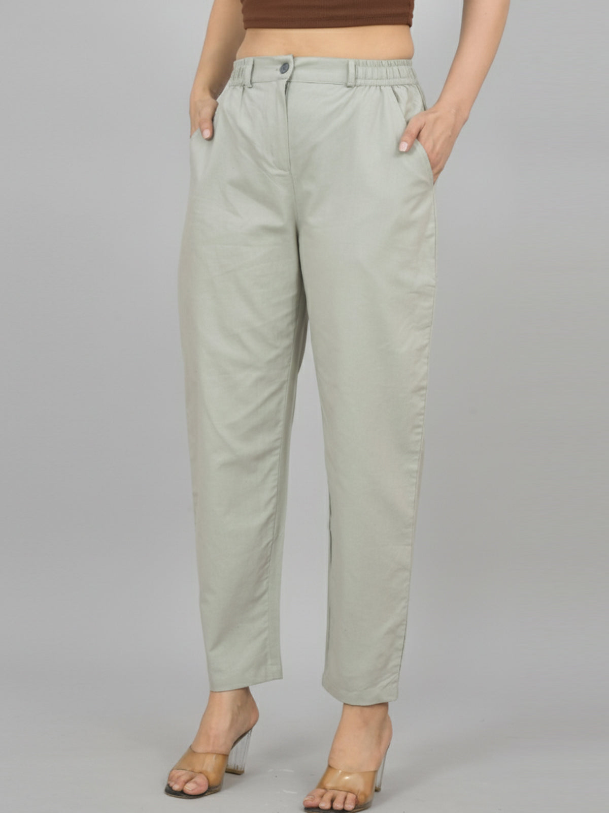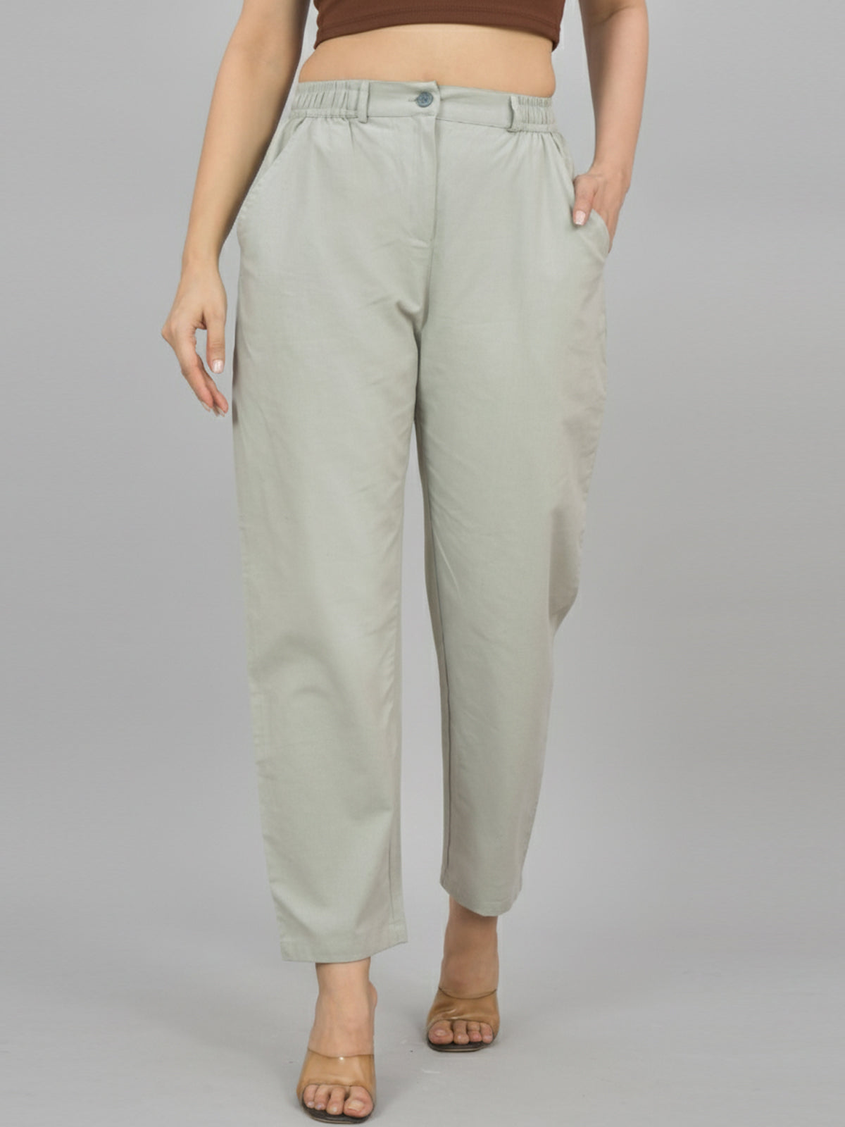 Everyday Melange Grey Cotton Pants With Zip Closure