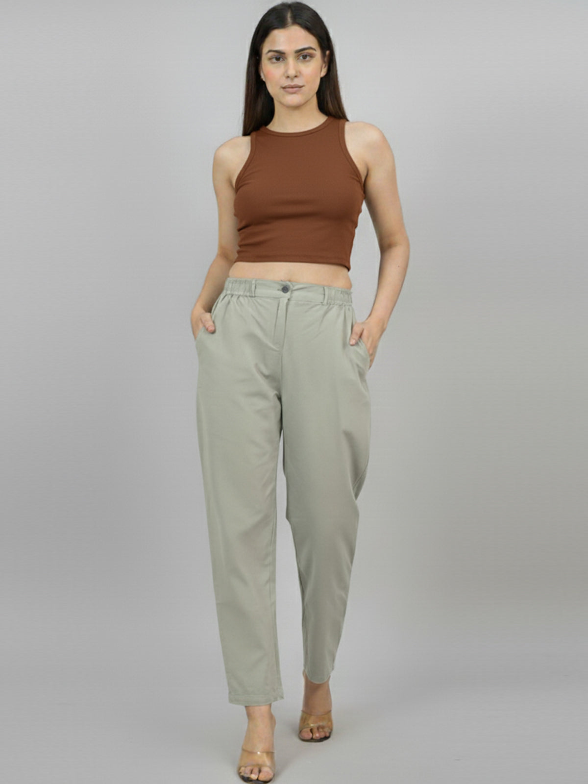 Upgrade your everyday wardrobe with these stylish women’s button pants, designed for both comfort and versatility. Made from premium cotton fabric, these pants feature a smooth front zip closure, a secure button fastening, and an elastic waistband for a flexible fit. The two side pockets add practicality for daily use. Perfect for formal meetings, office wear, or casual outings, these pants offer a polished and modern look that keeps you comfortable and confident all day long.