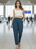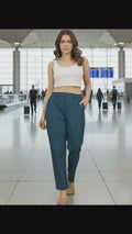 Everyday Teal Blue Cotton Pants With Zip Closure