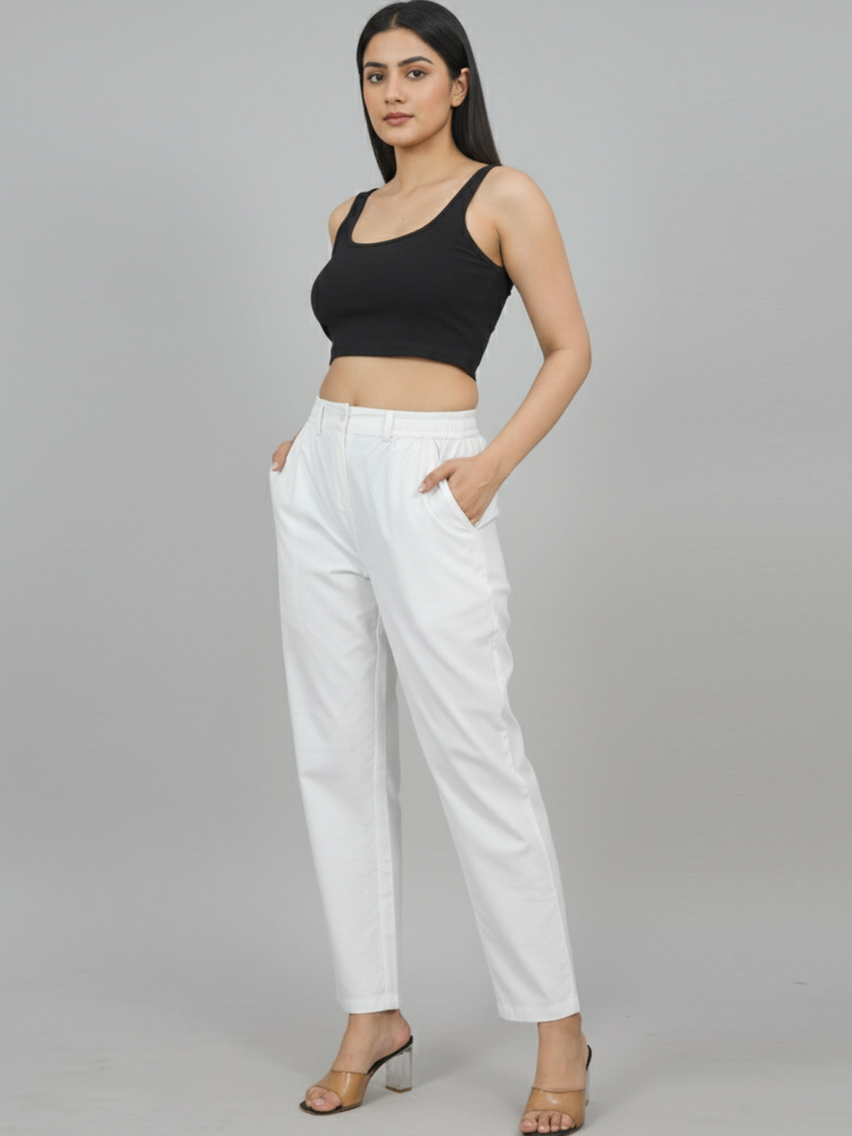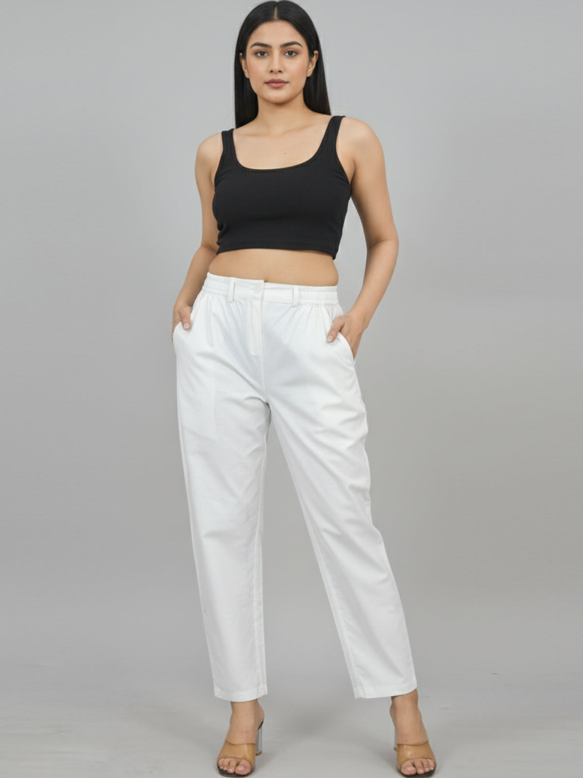 Upgrade your everyday wardrobe with these stylish women’s button pants, designed for both comfort and versatility. Made from premium cotton fabric, these pants feature a smooth front zip closure, a secure button fastening, and an elastic waistband for a flexible fit. The two side pockets add practicality for daily use. Perfect for formal meetings, office wear, or casual outings, these pants offer a polished and modern look that keeps you comfortable and confident all day long.