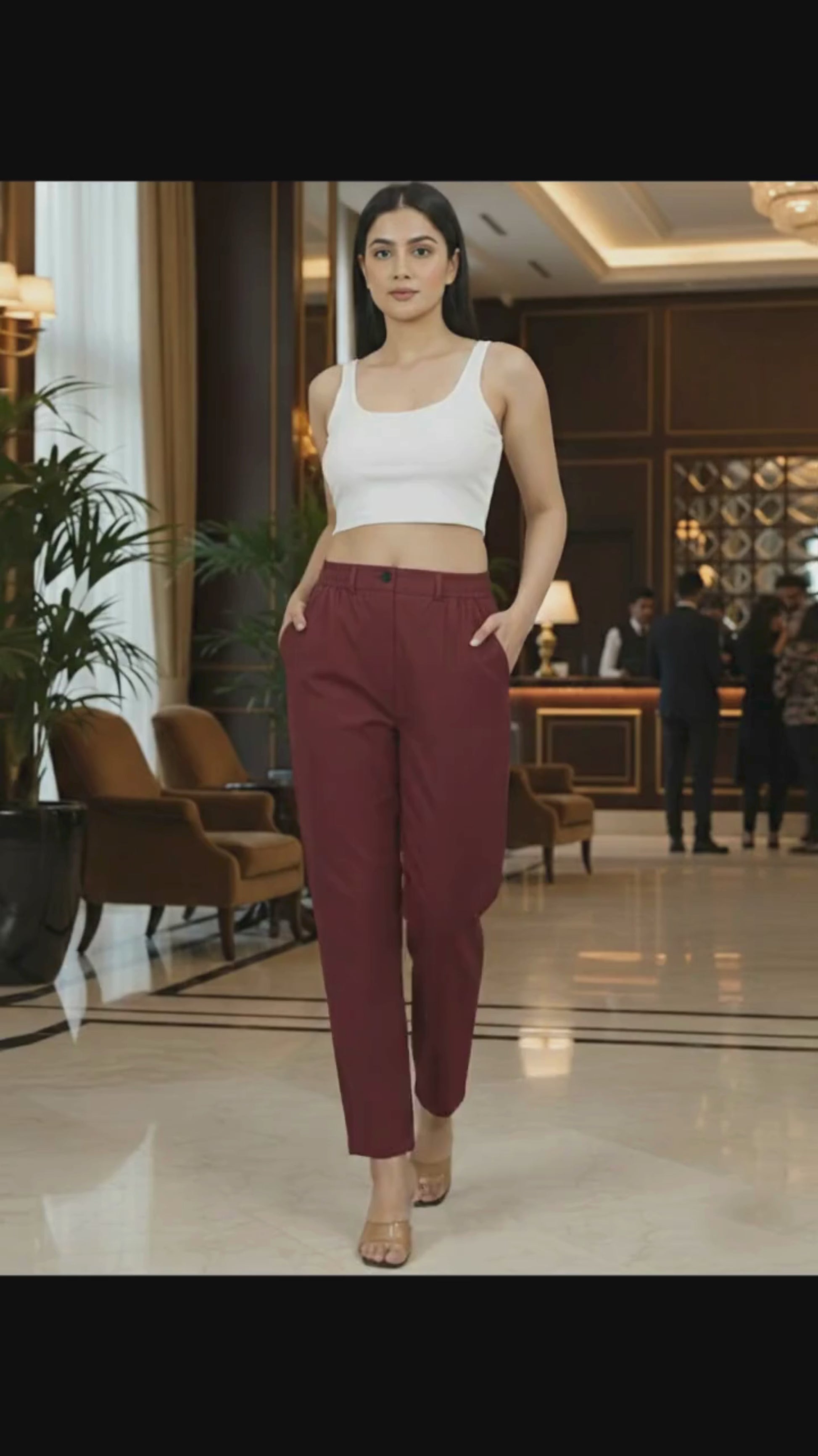 Upgrade your everyday wardrobe with these stylish women’s button pants, designed for both comfort and versatility. Made from premium cotton fabric, these pants feature a smooth front zip closure, a secure button fastening, and an elastic waistband for a flexible fit. The two side pockets add practicality for daily use. Perfect for formal meetings, office wear, or casual outings, these pants offer a polished and modern look that keeps you comfortable and confident all day long.